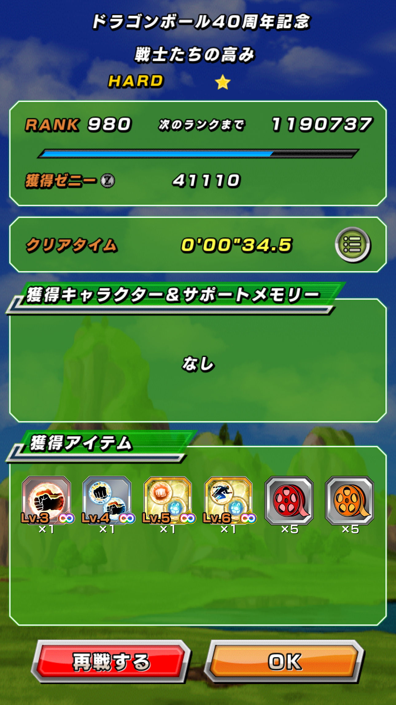 上記6体のDB40周年記念キャラ達の専用EXスキル玉が獲得可能、1周毎に『銅1個(マップ)』『銀1個(マップ)』『金2個(マップ&ボスドロップ)』で合計4個のEXスキル玉が入手出来ます。
