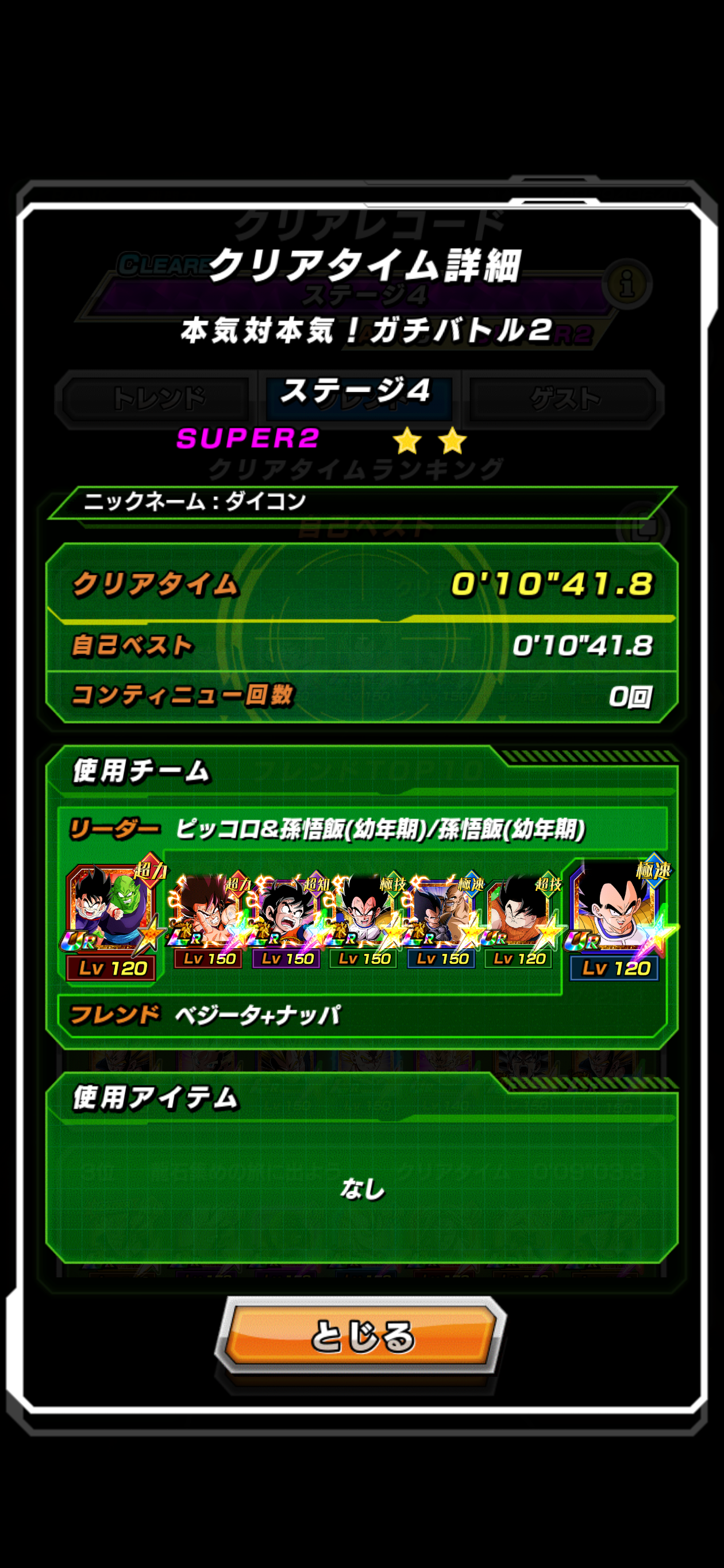 途中でアクティブスキルを撃ち忘れるプレミがあったからそれさえなければクリアは無理でもピッコロは倒せてた