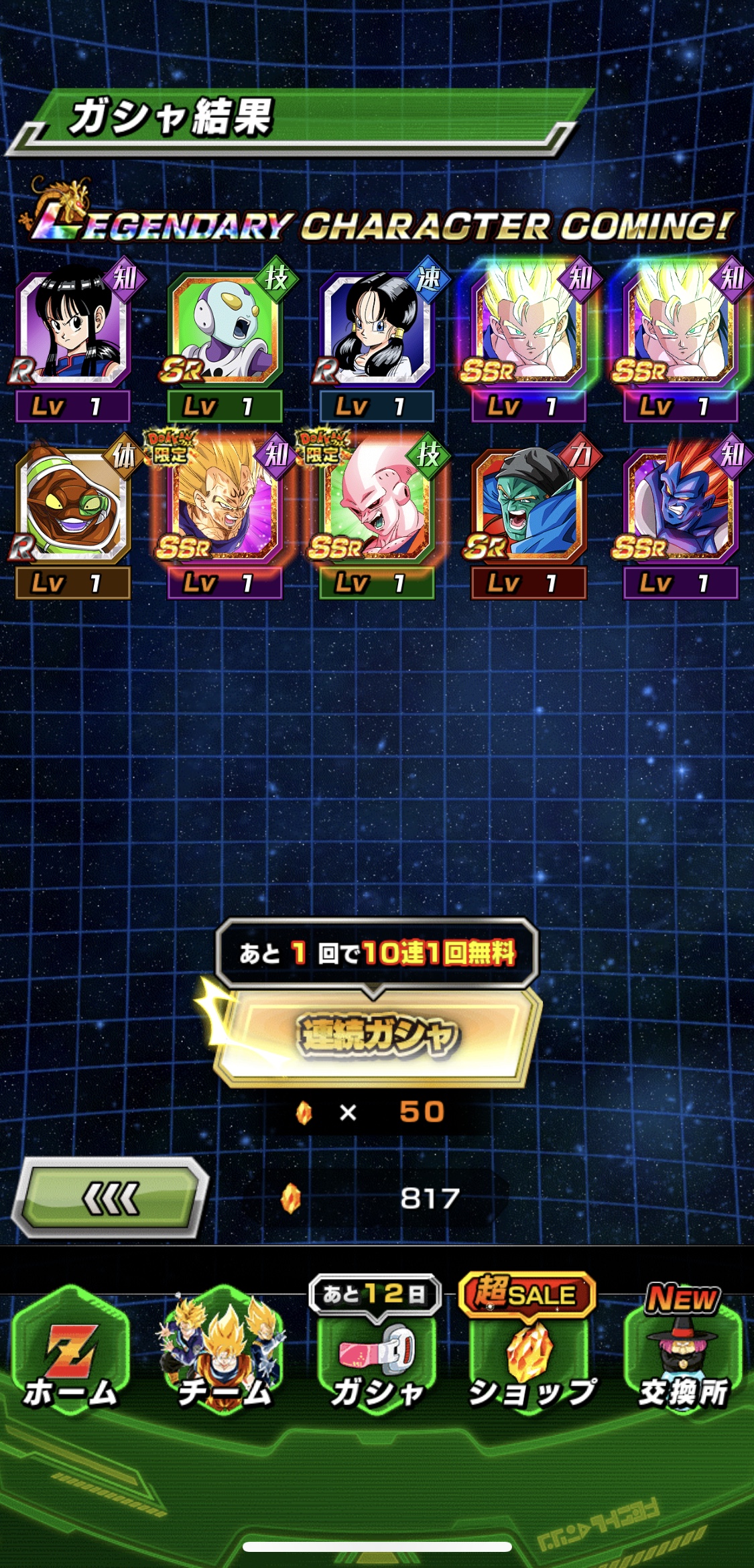 ⑤「魔人ブウ編」カテゴリを 6体編成してクリア (龍石×5)