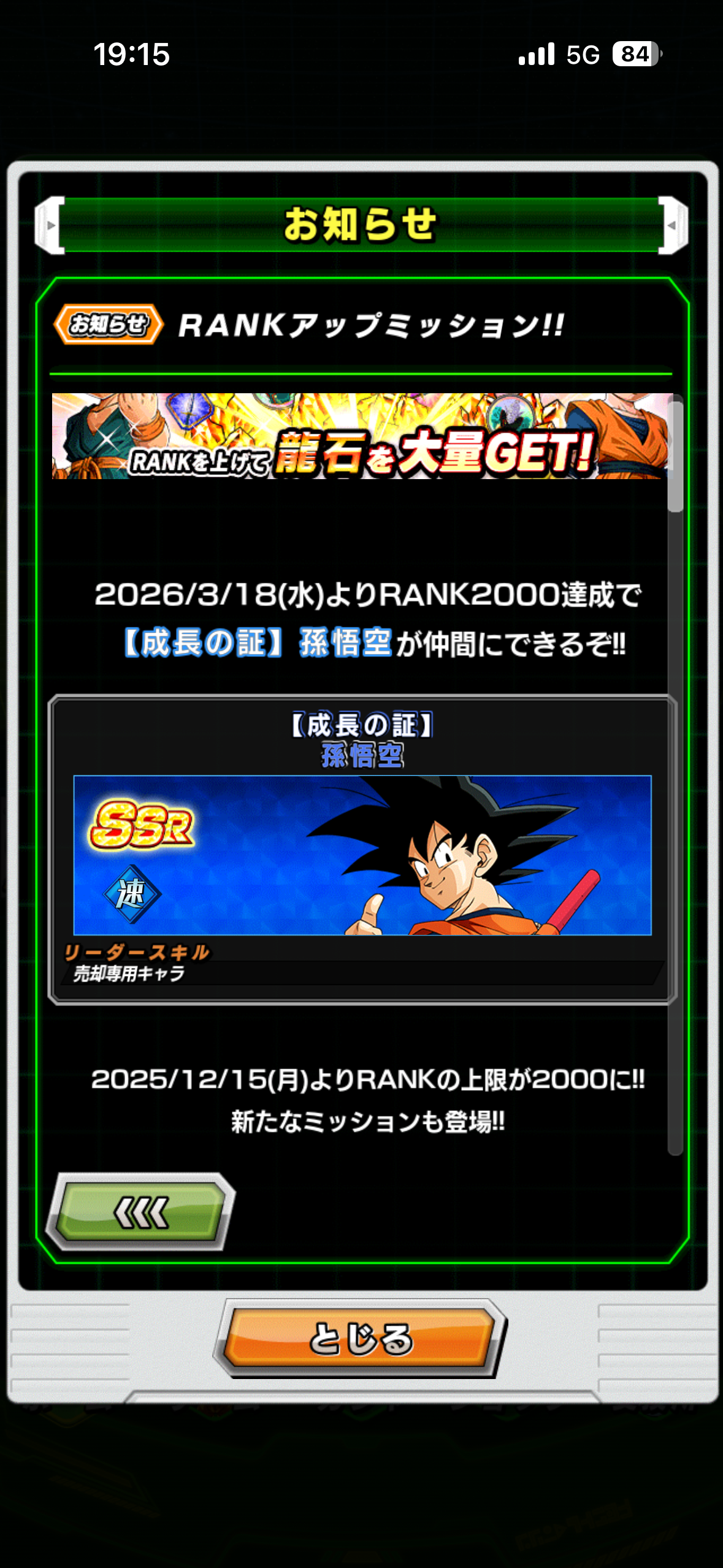 ⑥「超サイヤ人を超えた力」カテゴリを 6体編成してクリア (龍石×5)