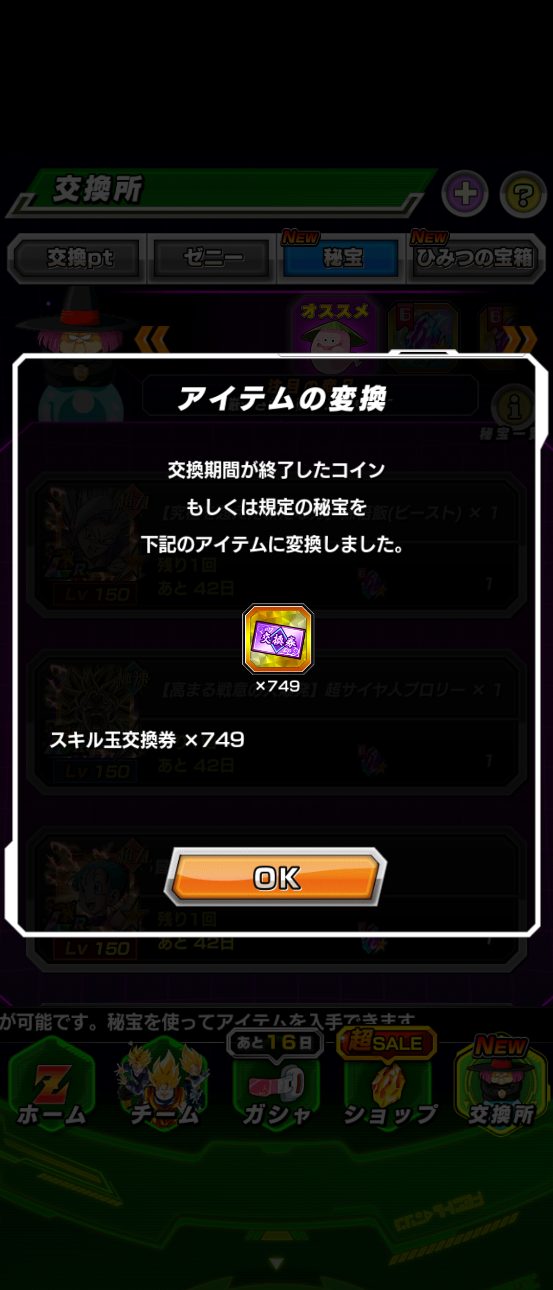 所持していた『宝箱開封券』は自動的に『スキル玉交換券』に変換されています。