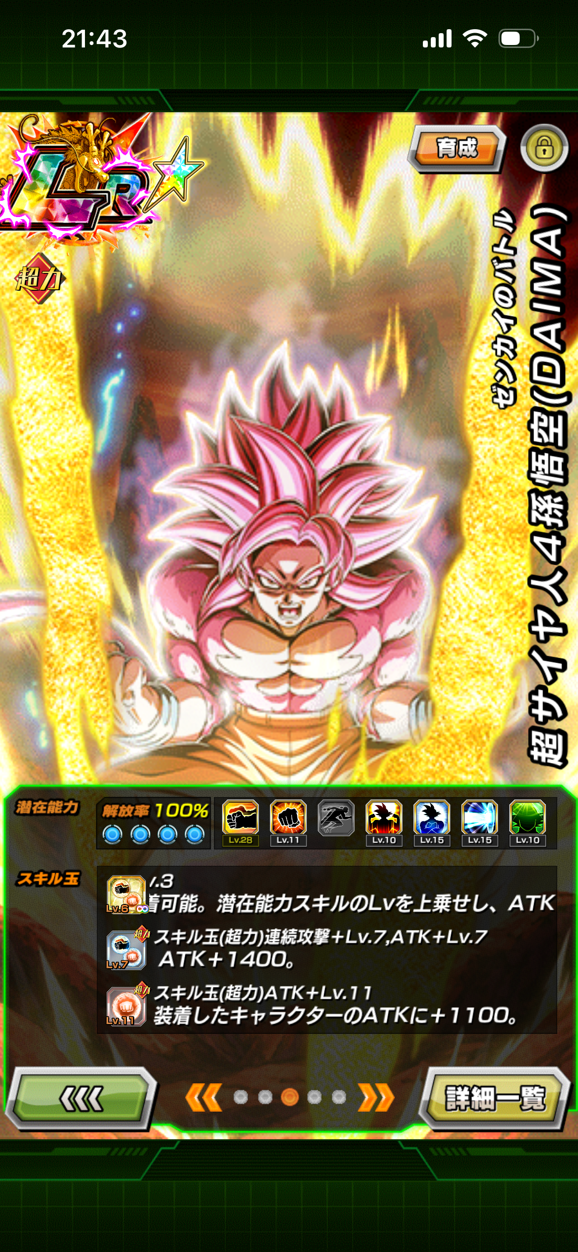 一例として、11周年の目玉キャラ・LR【ゼンカイのバトル】超サイヤ人4孫悟空(DAIMA)を『ATK+3,700』『DEF+3,700』した時、その強さにどれほどの違いが出て来るのか見てみましょう。
