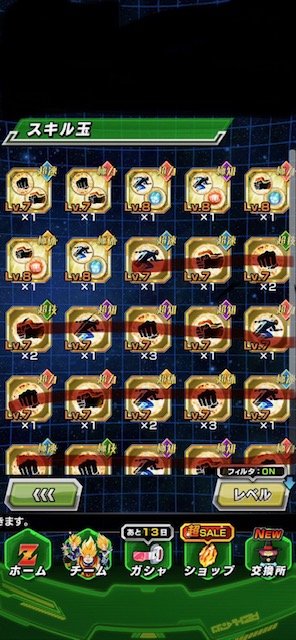 ゴミスキル玉しか出ない。ビルス来ても金の会心7、回避7とかのほぼ役に立たないやつばっか。