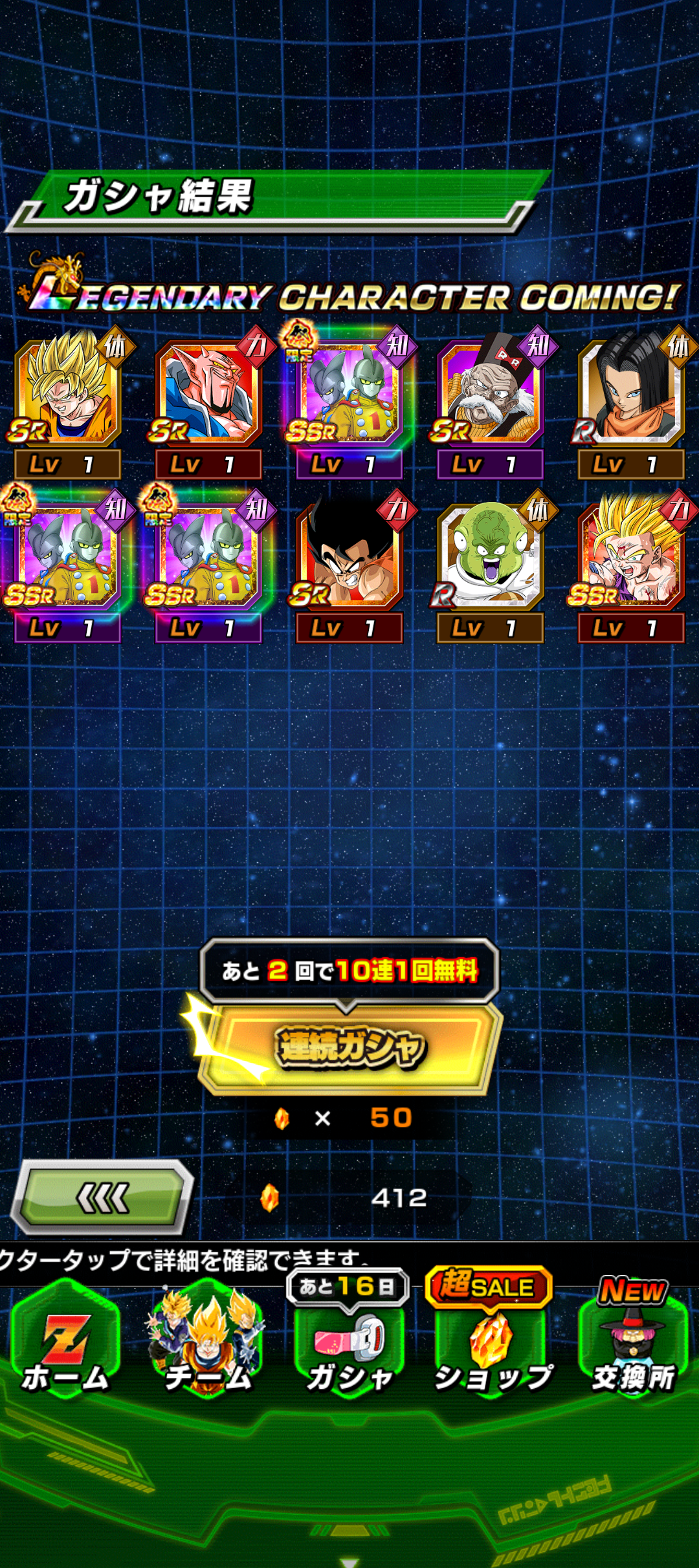 チャンス玉、応募券、キャラ予想、ランブルクラッシュ、界王神のデイリー、宝箱、悟空の気力、悟空の超確率追撃、ex必殺技