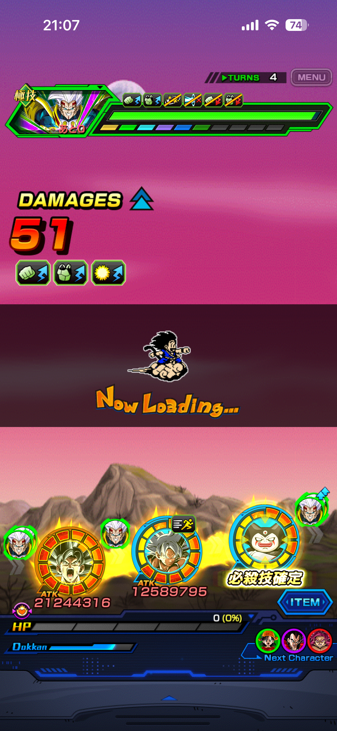 全体的に敵はクソ弱いですが、最終ラウンドの悟空&フリーザのみ、ターン開始時にHP50%以下まで追い詰めると『ATK500万超えの会心必殺』を放って来ます。