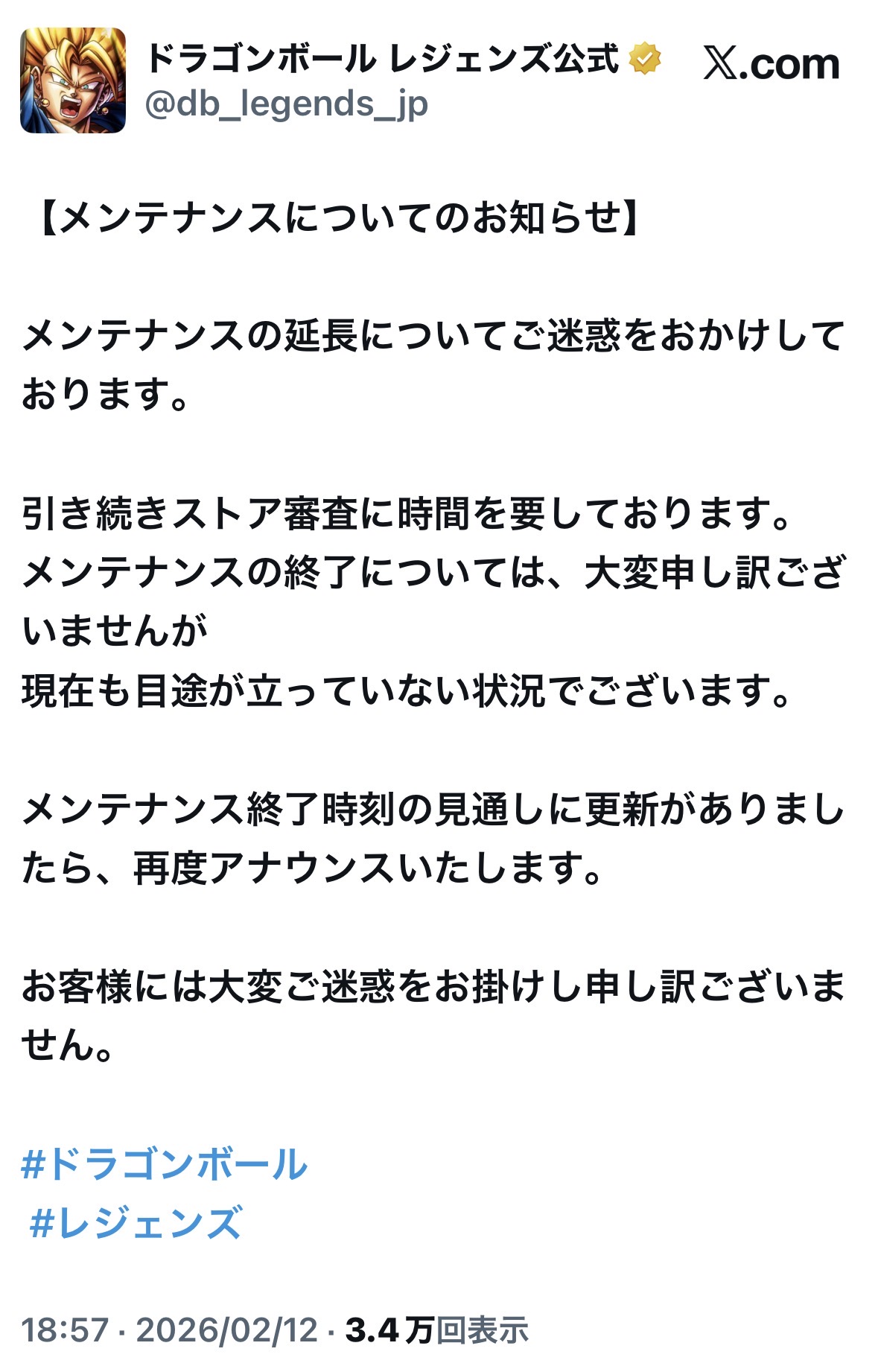 メンテナンス明けるの明日になりそう