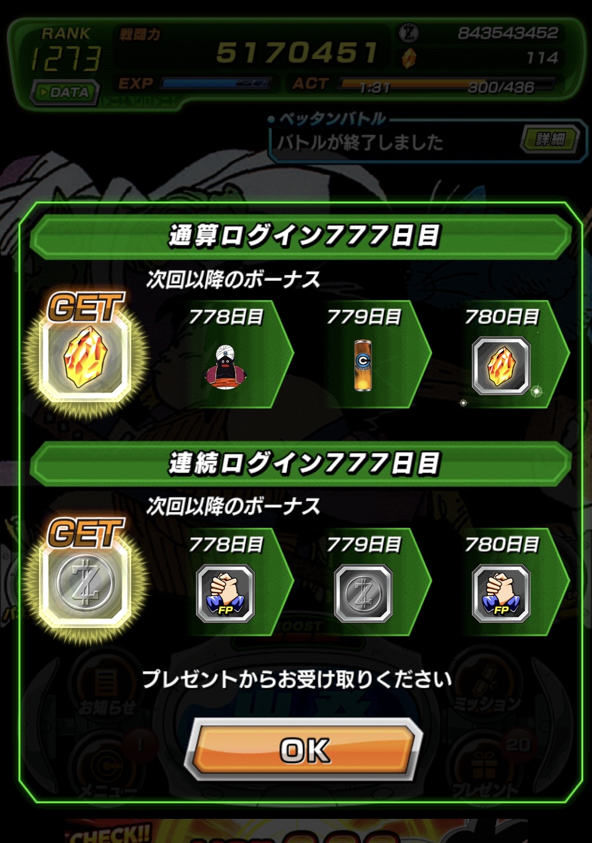 既にRANK999に到達していたユーザーについては、『RANK1109』までの分は裏で経験値がしっかり蓄積されていたのでアップデートと同時にそこまでのランクアップは行われています。