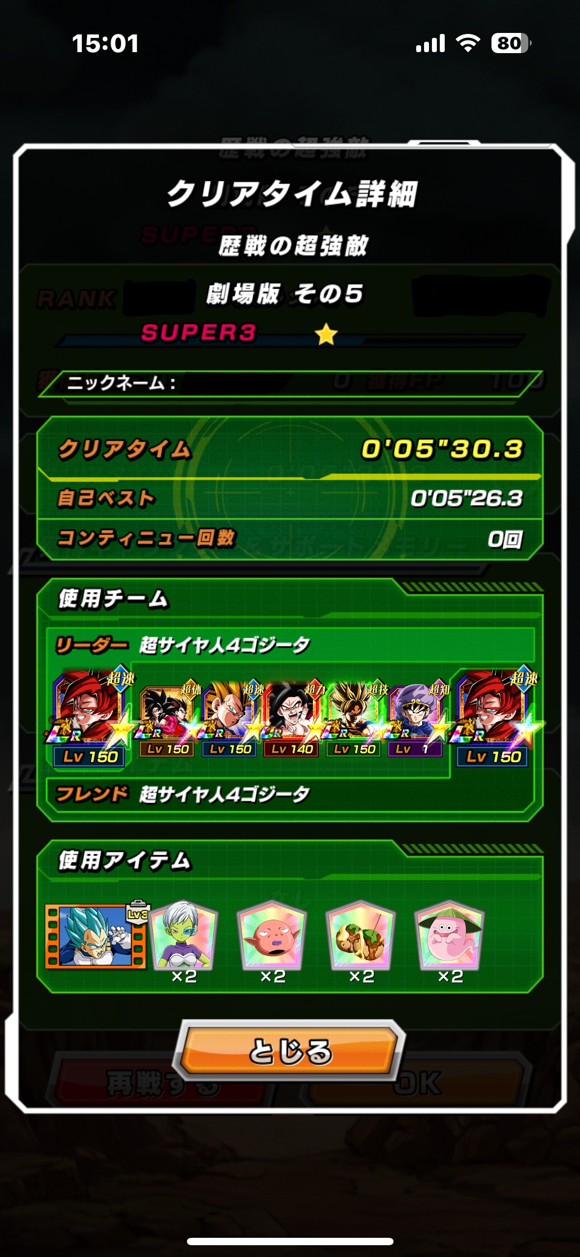とは言え『純粋サイヤ人+融合/合体戦士』という最強のリーダースキル範囲でこんな火力も守りも足りてなくてBOSSキャラリンクもマトモに組めない1番手キャラを採用する価値など0に等しく、やはり現状出番は40周年チームに限られるでしょう。