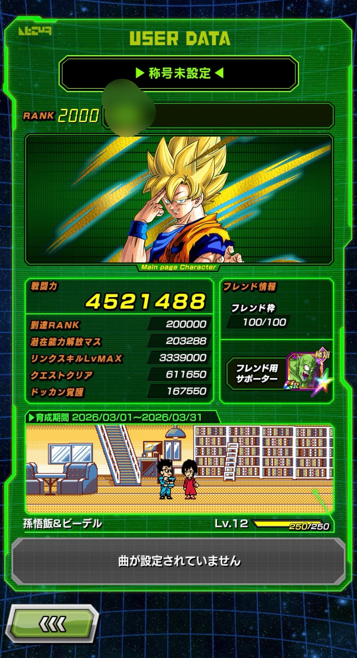 2025年12月15日のver5.32.0アップデートで解放された『RANK2000』に到達したユーザーのみが入手可能、生半可な覚悟では到底辿り着かない領域であり、サービス終了までにこの悟空を入手出来るユーザーというのも極々限られて来るでしょう。