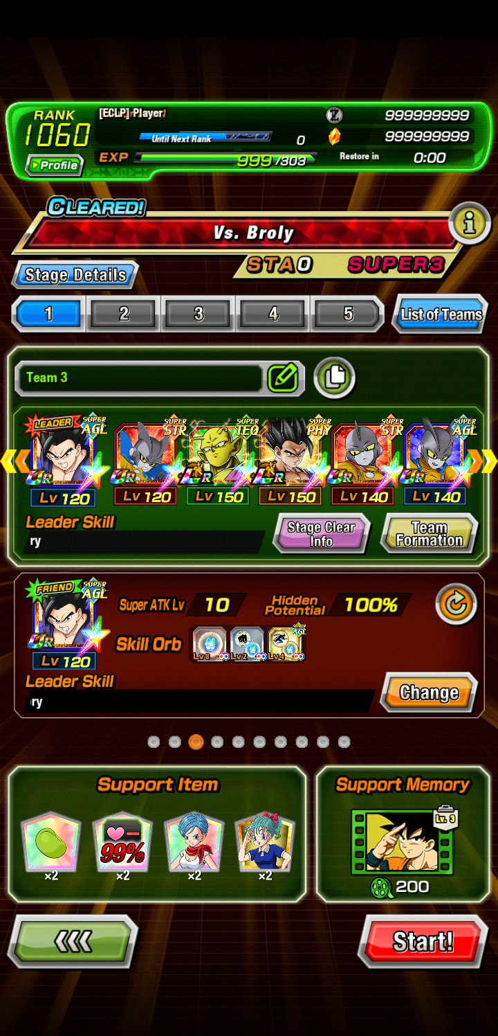 バトル開始4ターン目の時点で『超HERO』キャラに掛け算40%サポートを入れられるので、このゴジータの火力などは大爆発します。