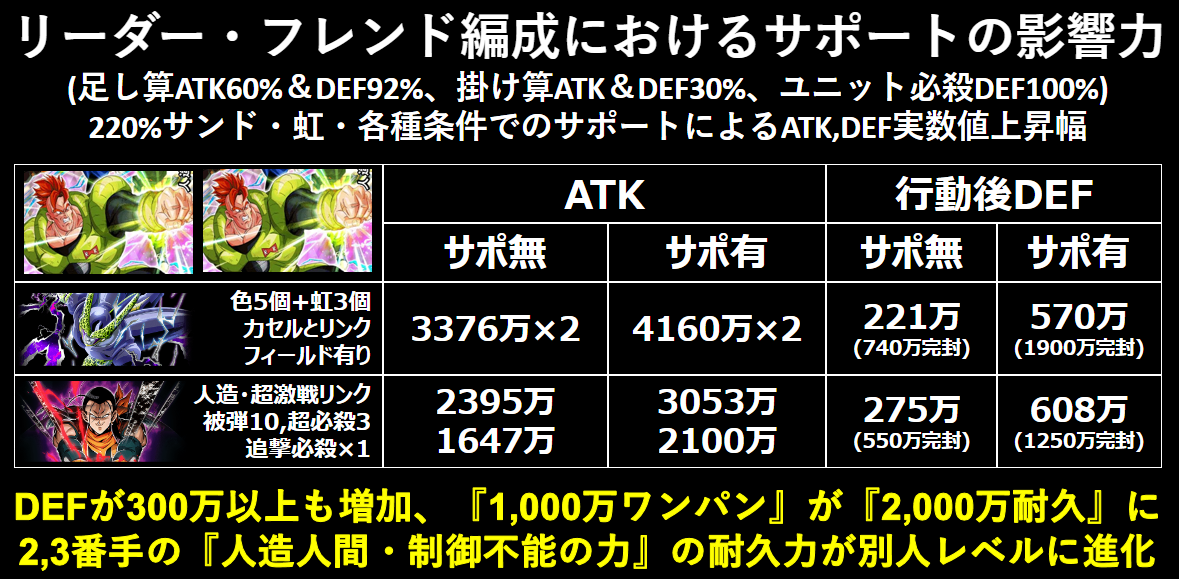 まあ常に100%サポートを掛けるには表にも裏にも17号が必要なので実戦ではそう安定しないでしょうが、片方だけのサポートでもとんでもない事になるであろうことは想像に難くないでしょう。