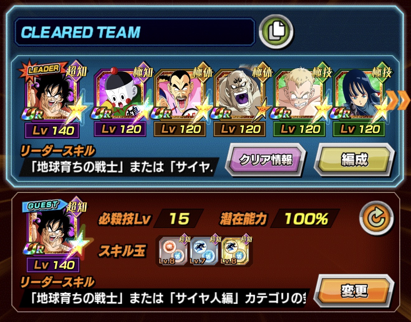 『チーム7体全員が極系の地球人が少年編キャラ』となる事で全力を発揮するキャラ、この条件を満たせるチームってどんなんだ…という感じですが、その前提を満たすと典型的な『回避型サポーター』として使える余地も出て来ます。