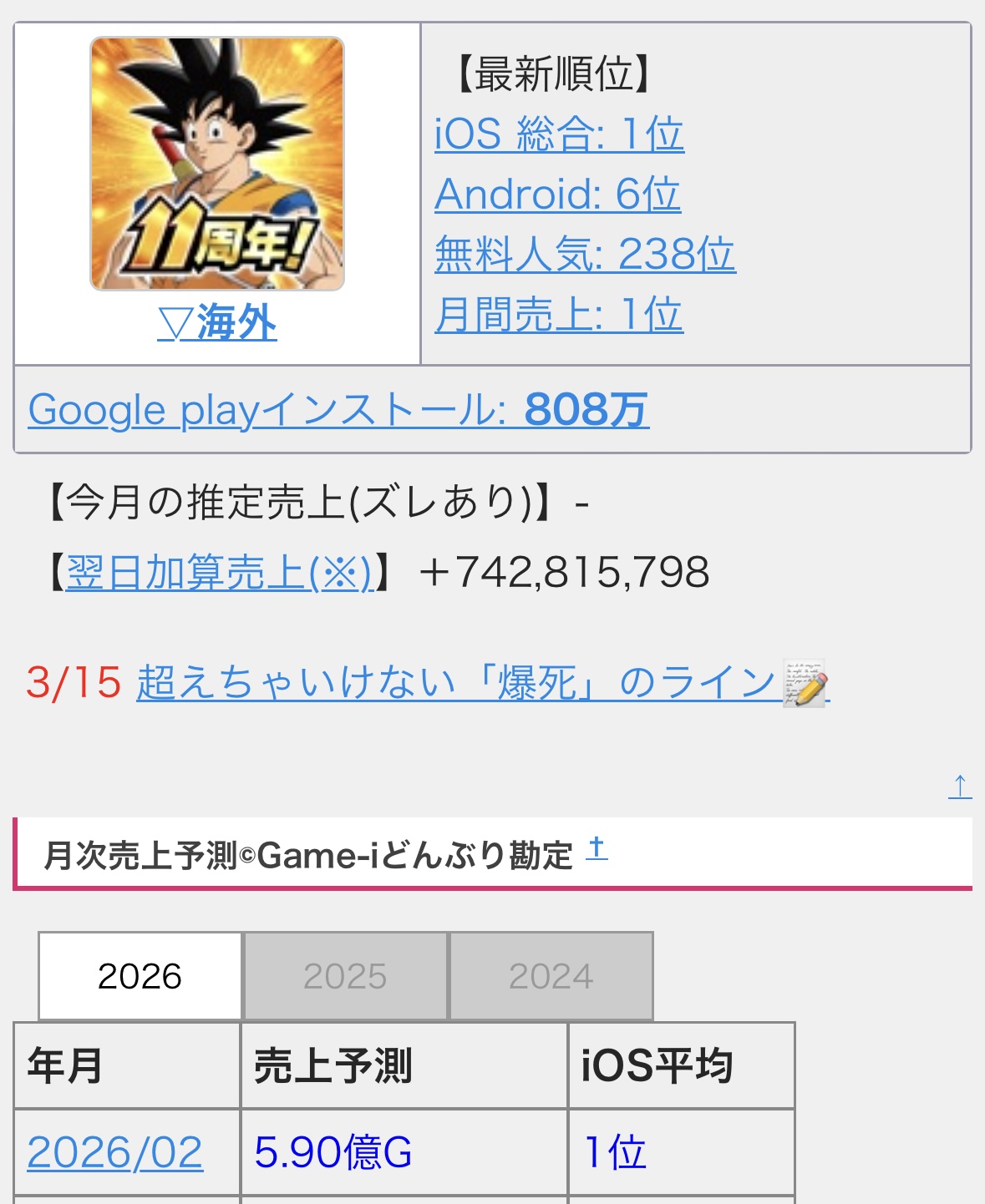 例年の周年の直前はセールス圏外とかだけど 今年はゴマー様が出るガシャがあって100位以内をキープ できてたのもでかいのかな