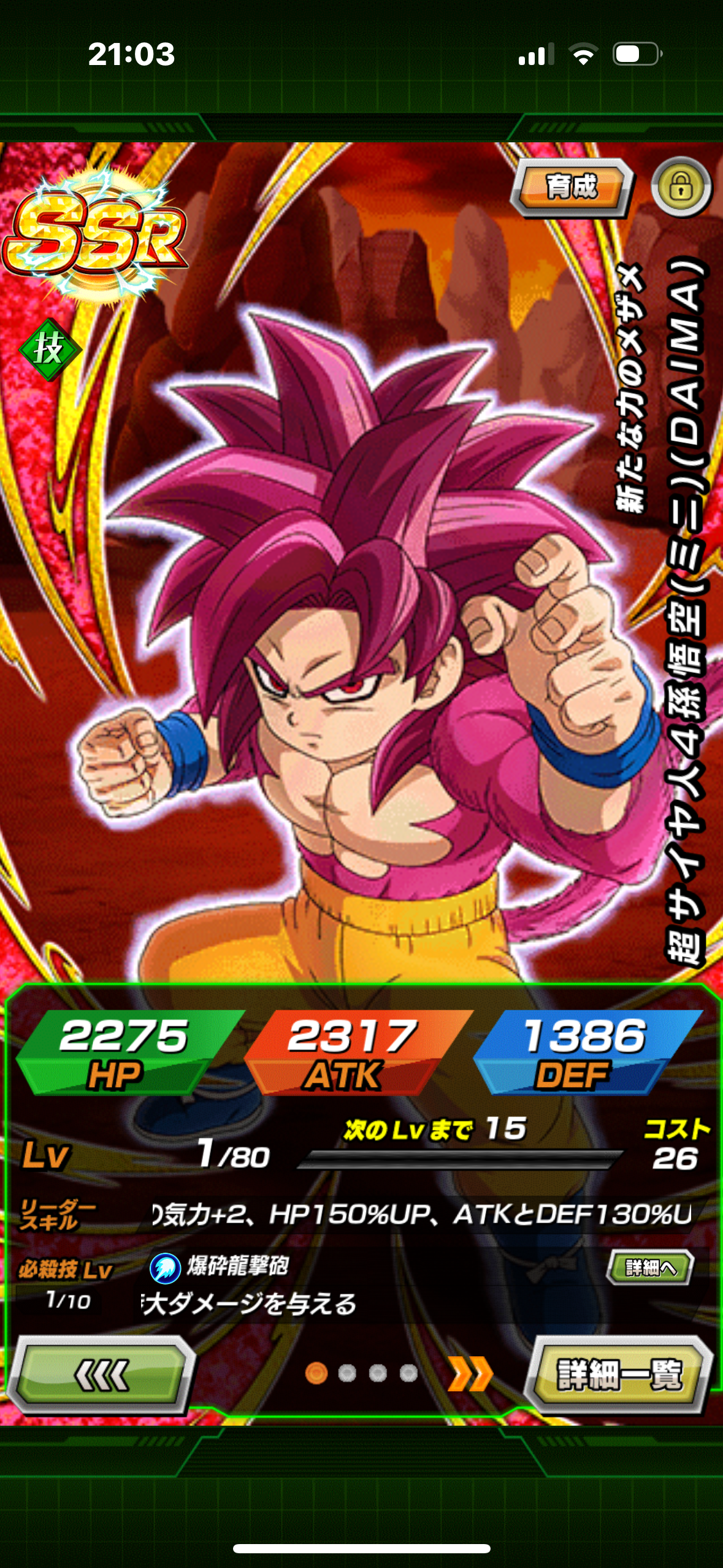 俺は運よくダイマ4悟空を天井まで引いて虹に出来たんで、ゴマーもとりあえず母体は引きたいわ