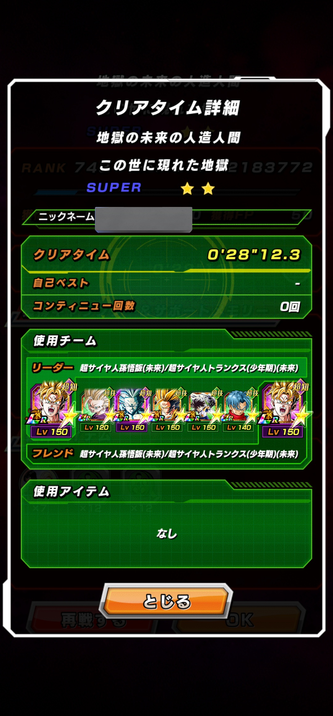 開催ステージ:超激戦・『地獄の未来の人造人間』ステージ1[難易度SUPER]