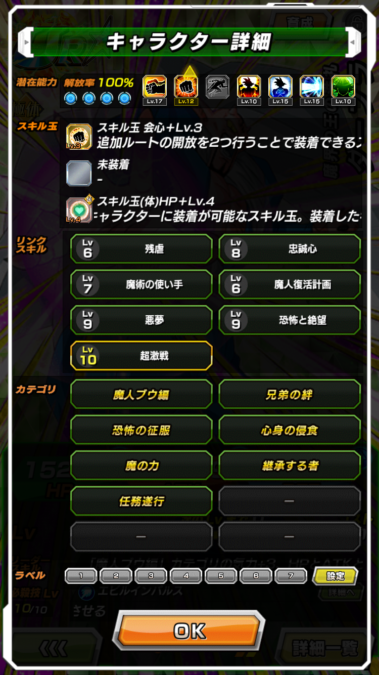 「魔人ブウ編」「恐怖の征服」に170%、「魔の力」「心身の侵食」「継承する者」に50%補正だとゴマーやフリーザ系に220%補正かけれるから丁度良さそう