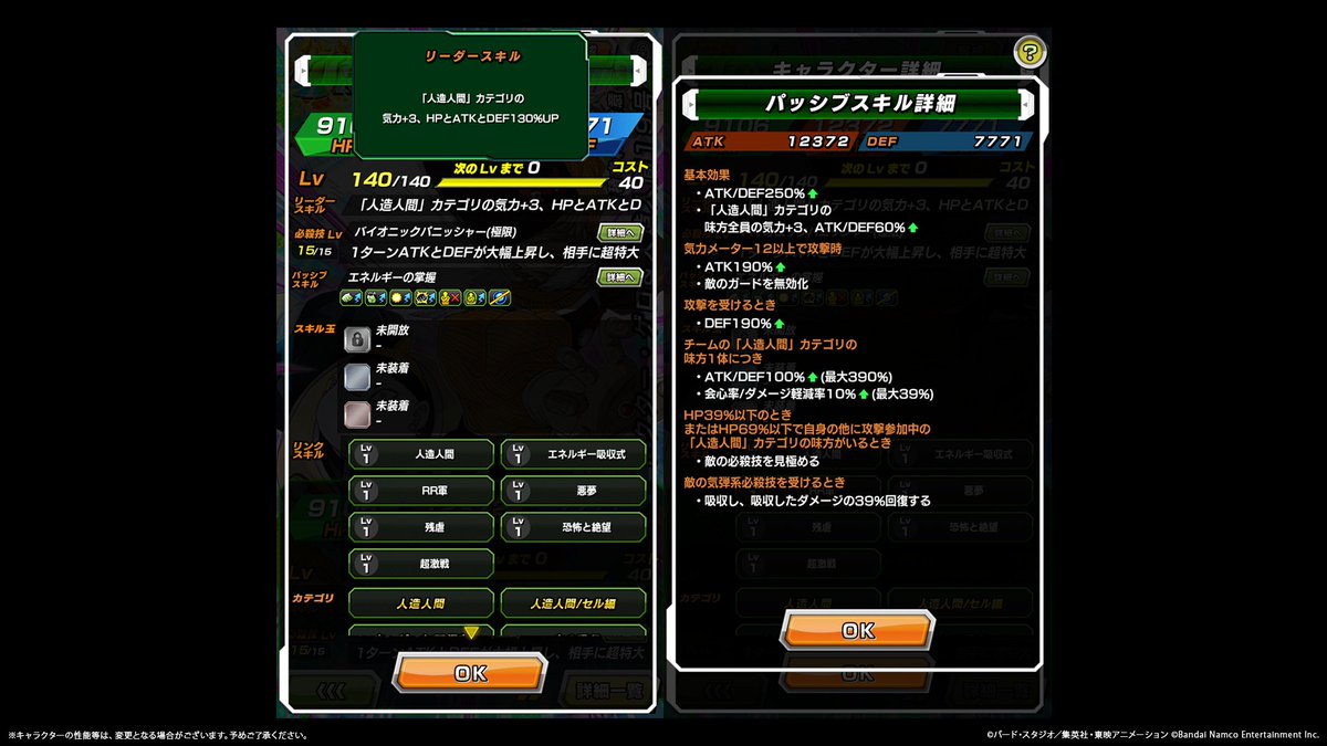 最強の遅延アクティブ持ち17号&18号ですが、性能的にはほぼほぼ基礎性能そのままに強化された印象です。