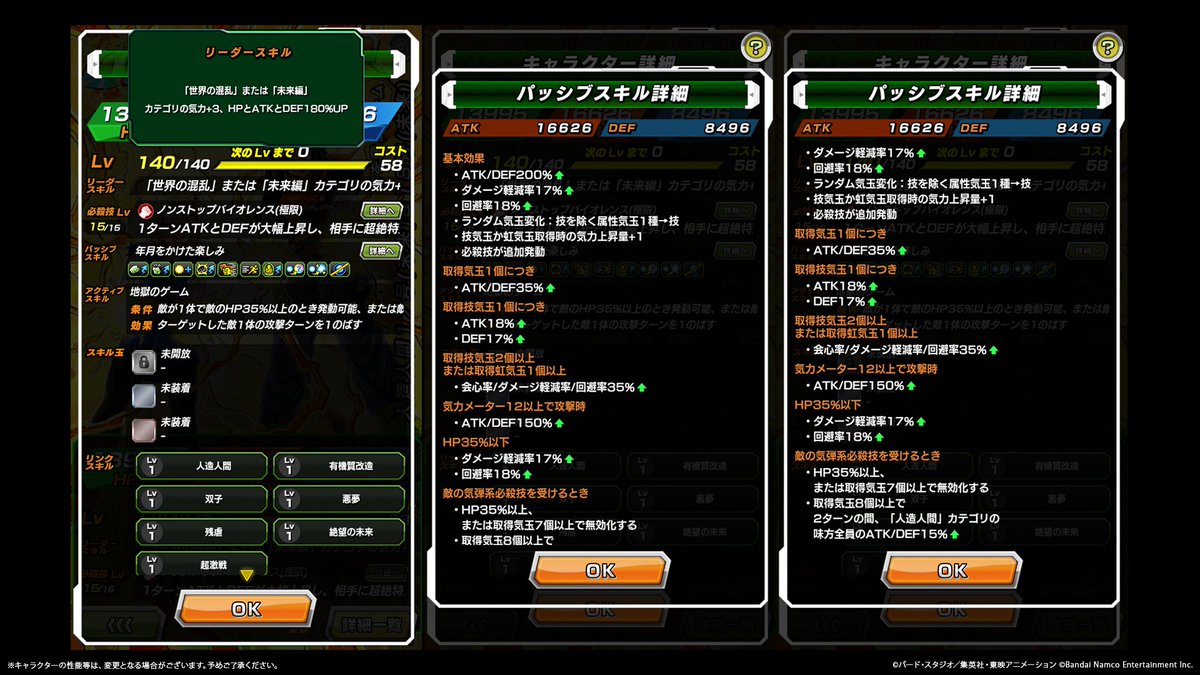 今回の極限はいずれも人造人間編成なら文句無しのパワーアップ、17号&18号はそれ以外の編成でも『vs気弾必殺ステージの遅延役』としては現行最高難易度イベントでもバリバリ使える実力になったと言えそうです。