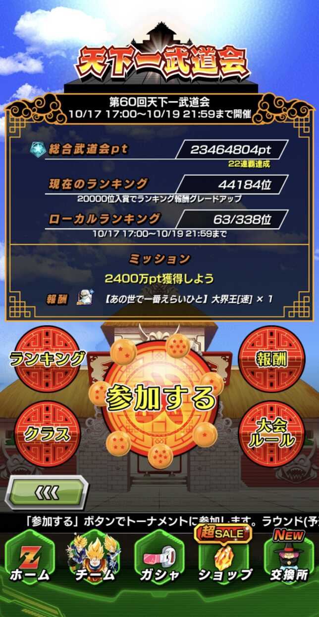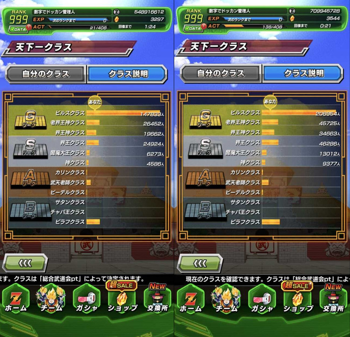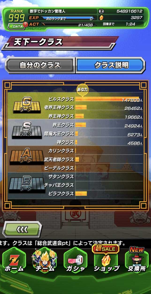 よく考えたら天下一のクラス帯って、ヒーローズの天下一武道会モードに似てるな。 ドッカンが真似たのかな?