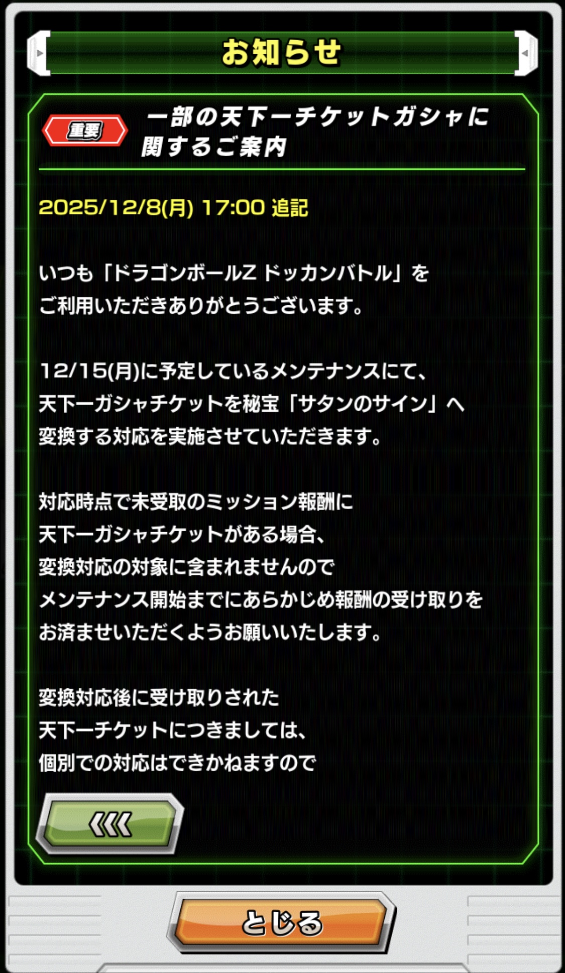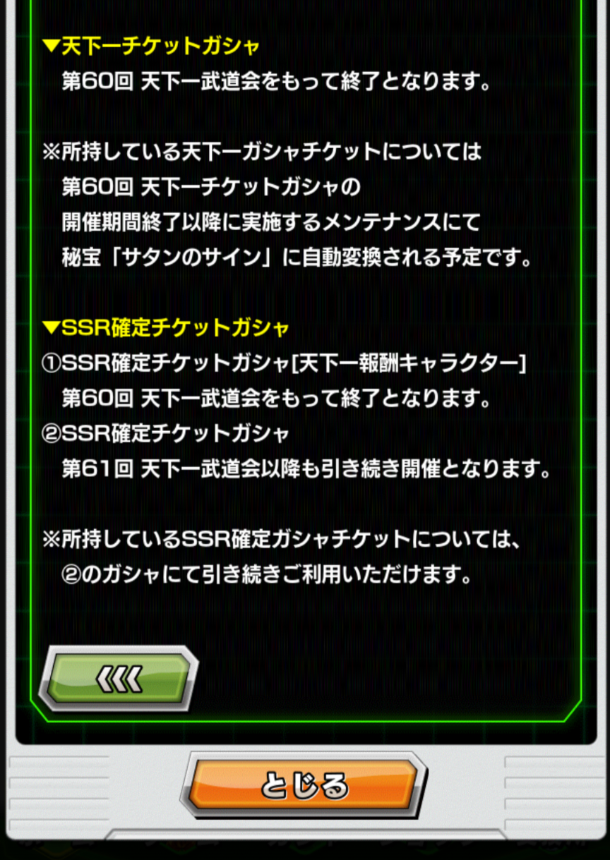 ただやる事自体はいつもと変わらず、メカフリーザの極限が温存された事や次回からSSRチケットがテコ入れされる事などからも、やはり天下一武道会というコンテンツはこのままの形で続けて行くようです。
