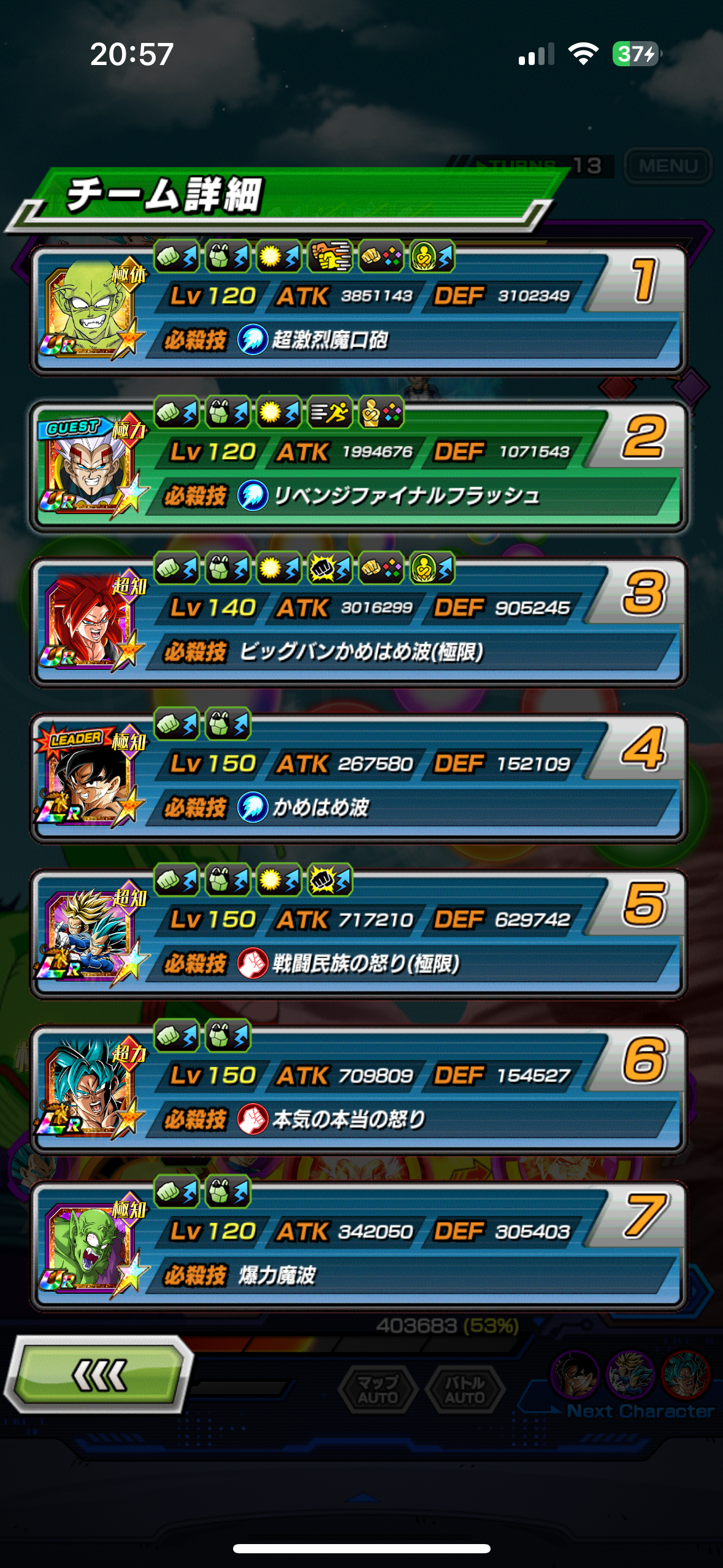 まずは1セット。『マジュニア:1凸』『ベジータ:3凸』『フリーザ:2凸』『悟飯:2凸』『ブウ:1凸』で中々の出だし!