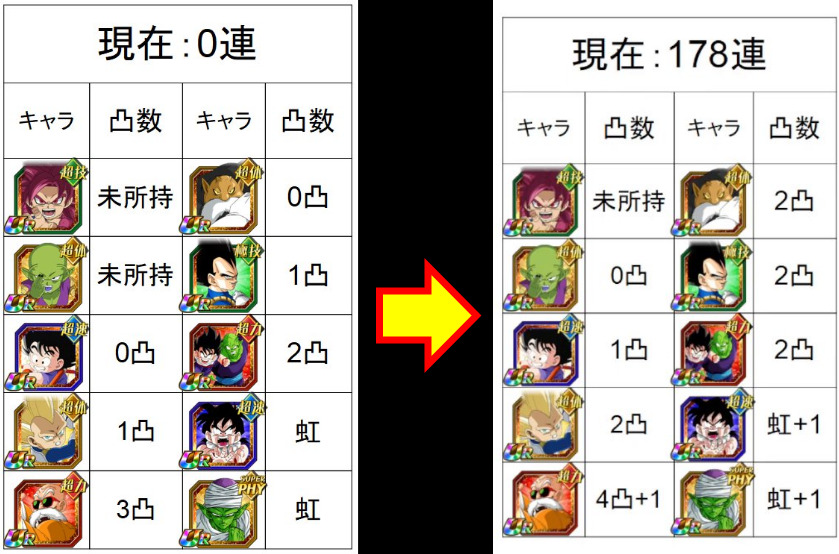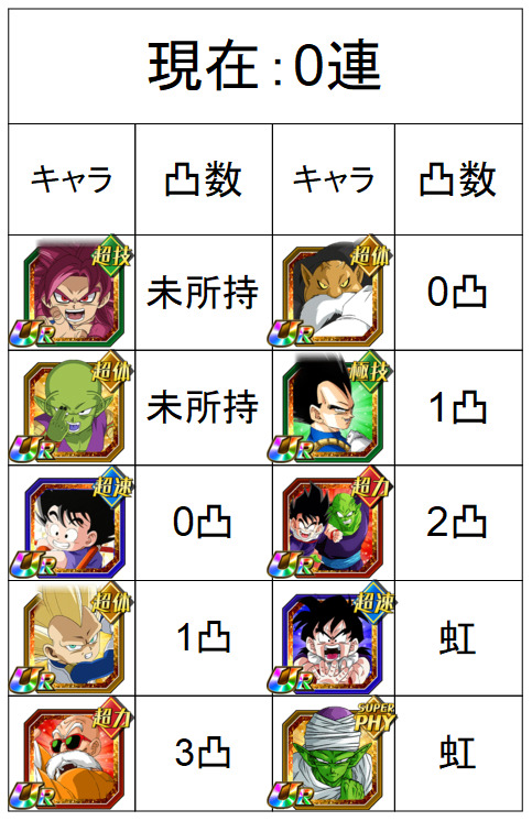 天井+10連で悟空4虹になったんだが、ピッコロ出ず