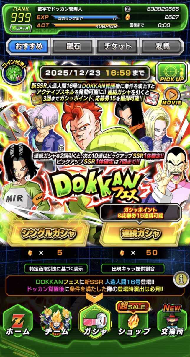 28日からスタートしている【緊急事態への対処】人造人間16号のドッカンフェスですが、今回は新キャラがニコイチでかなりの実力は発揮出来るものの応用性は低く、年最大のガシャラッシュを前に引く人もそう多くはないでしょう。