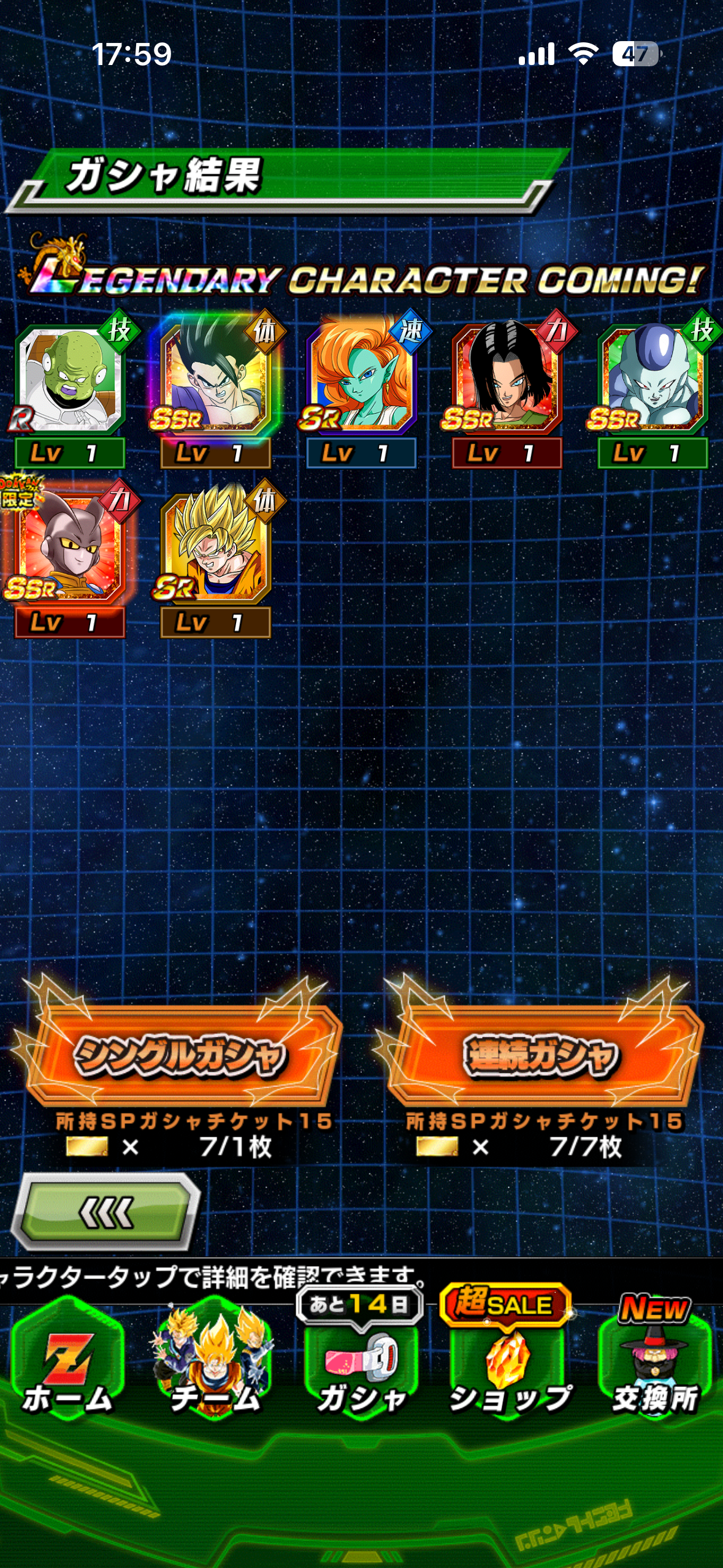 後はガチバトルEXミッションと明日のスペシャルデーのチケットがあるのでそこは追加でちょこっと引いておこうと思います。DEF実数値が怪しそうな悟飯1号の方にしておこうかな?