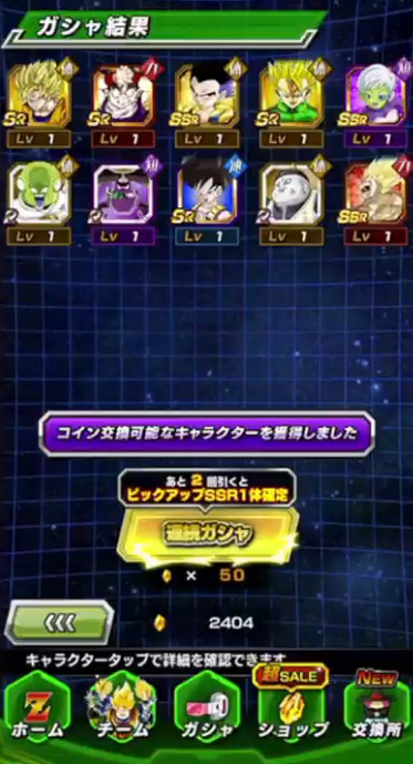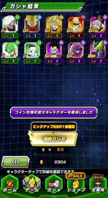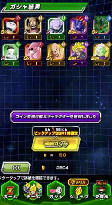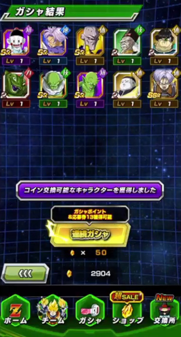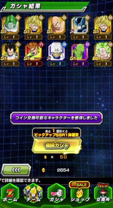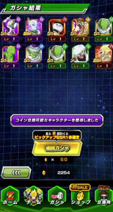 せっかく未所持キャラ・0凸キャラも多かったのにそこで出たのは天津飯1枚とかなり下振れしましたが、内1体がゴマーであってくれたのは本当に助かった…。