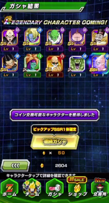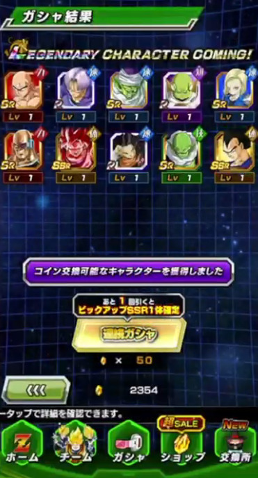 伝説降臨のUR枠がアレなのはいつも通りですが、今回に関しては実はG.W.の時の【文字どおりの奥の手】ピッコロが未所持なので地味にそこは欲しいです。