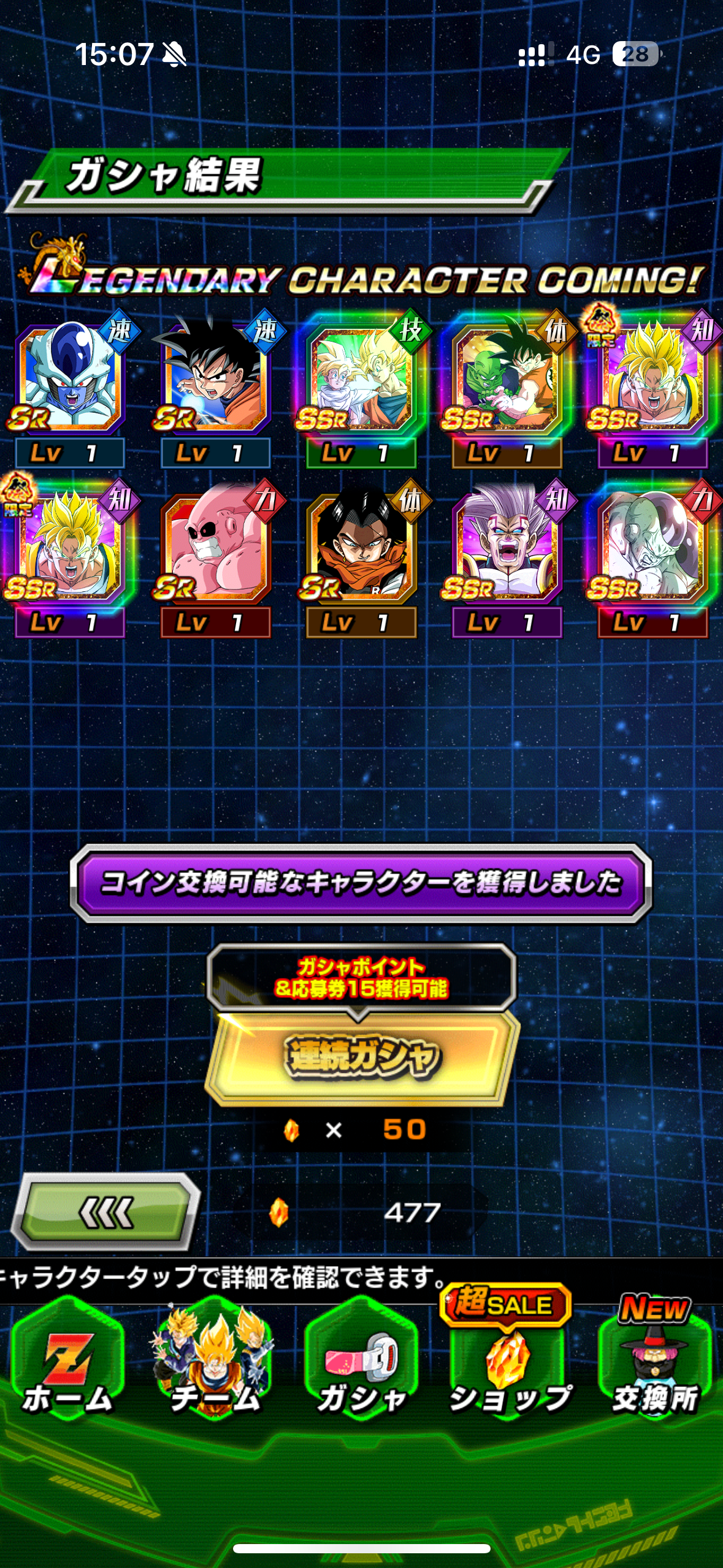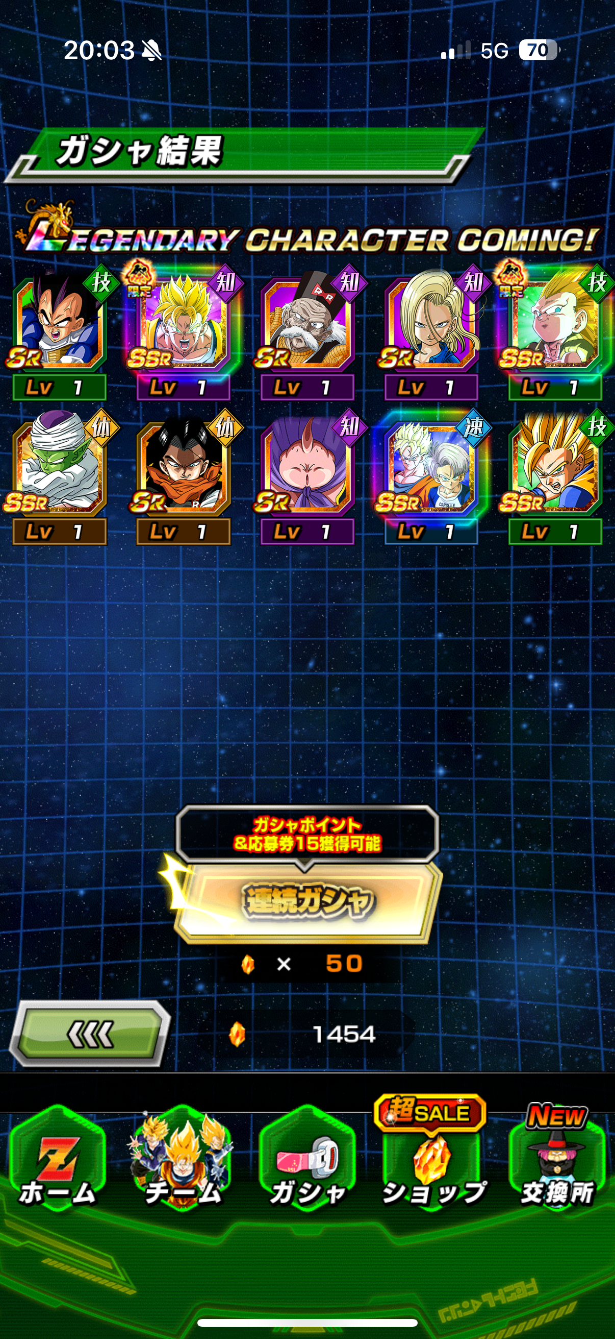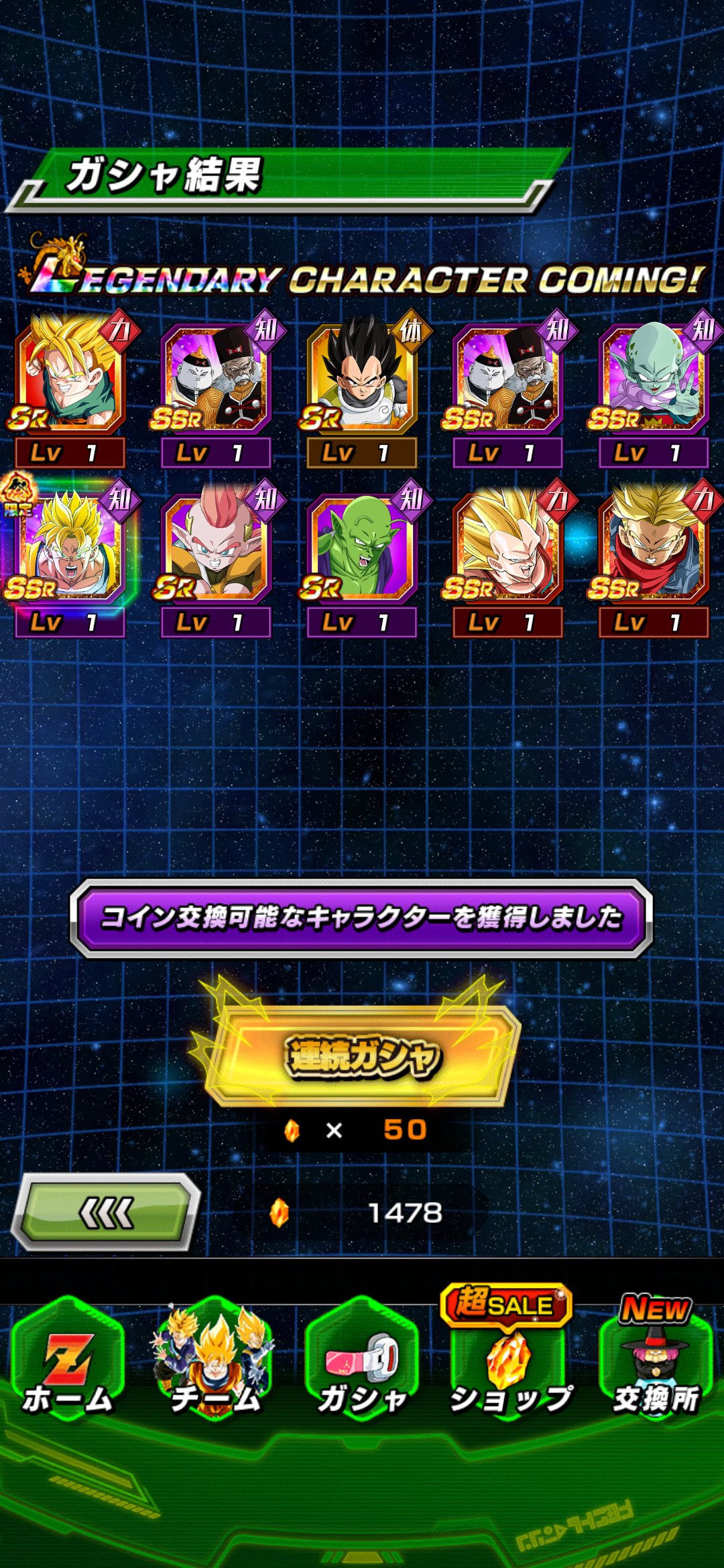 さっきの無音でゴマー出たから一回切って、ダメ元で10連引いたらまた無音で、ベジータとウイス来て出た。