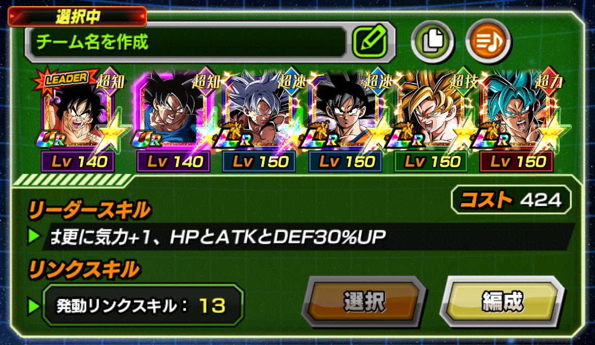 最大の強みは何よりもまず超火力の反撃、合体前の悟空状態で積んだATK無限上昇で爆発的に引き上がるので、そこのセットアップをしっかりしておけばとてつもない程のパワーとなって来ます。