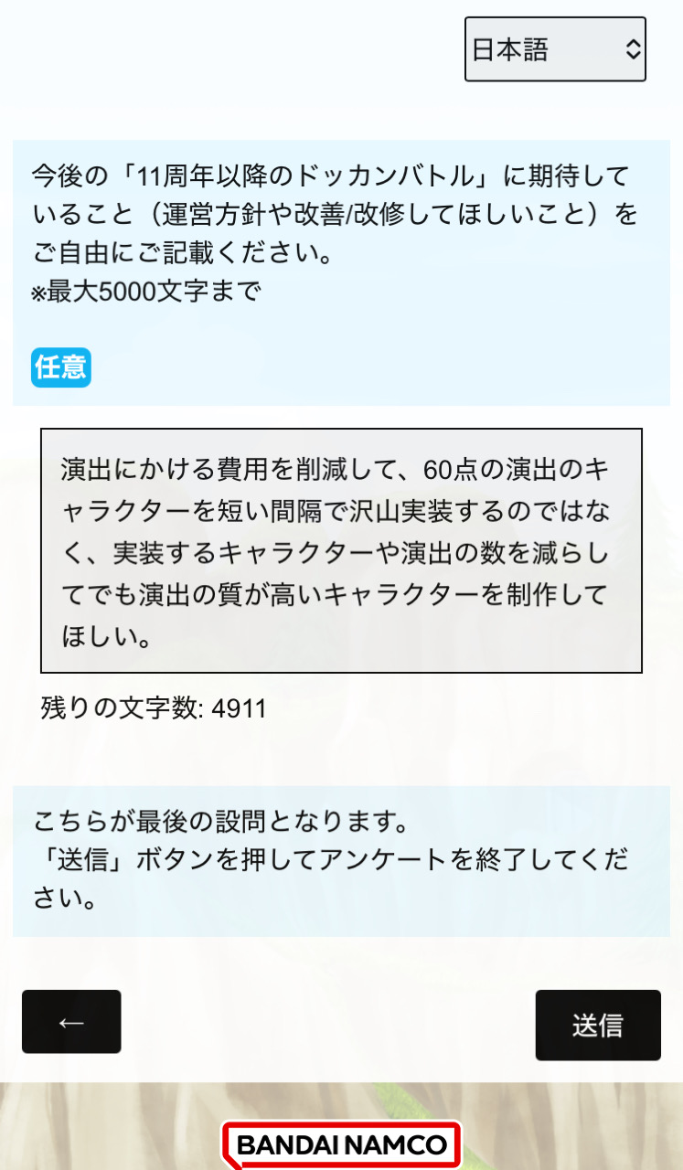 今回の周年記念CPでは一部やり方を変えたり挑戦的な試みもありましたが、そこに関連する設問もあるので今後の方向性にもダイレクトに影響して来るアンケートになりそうです。