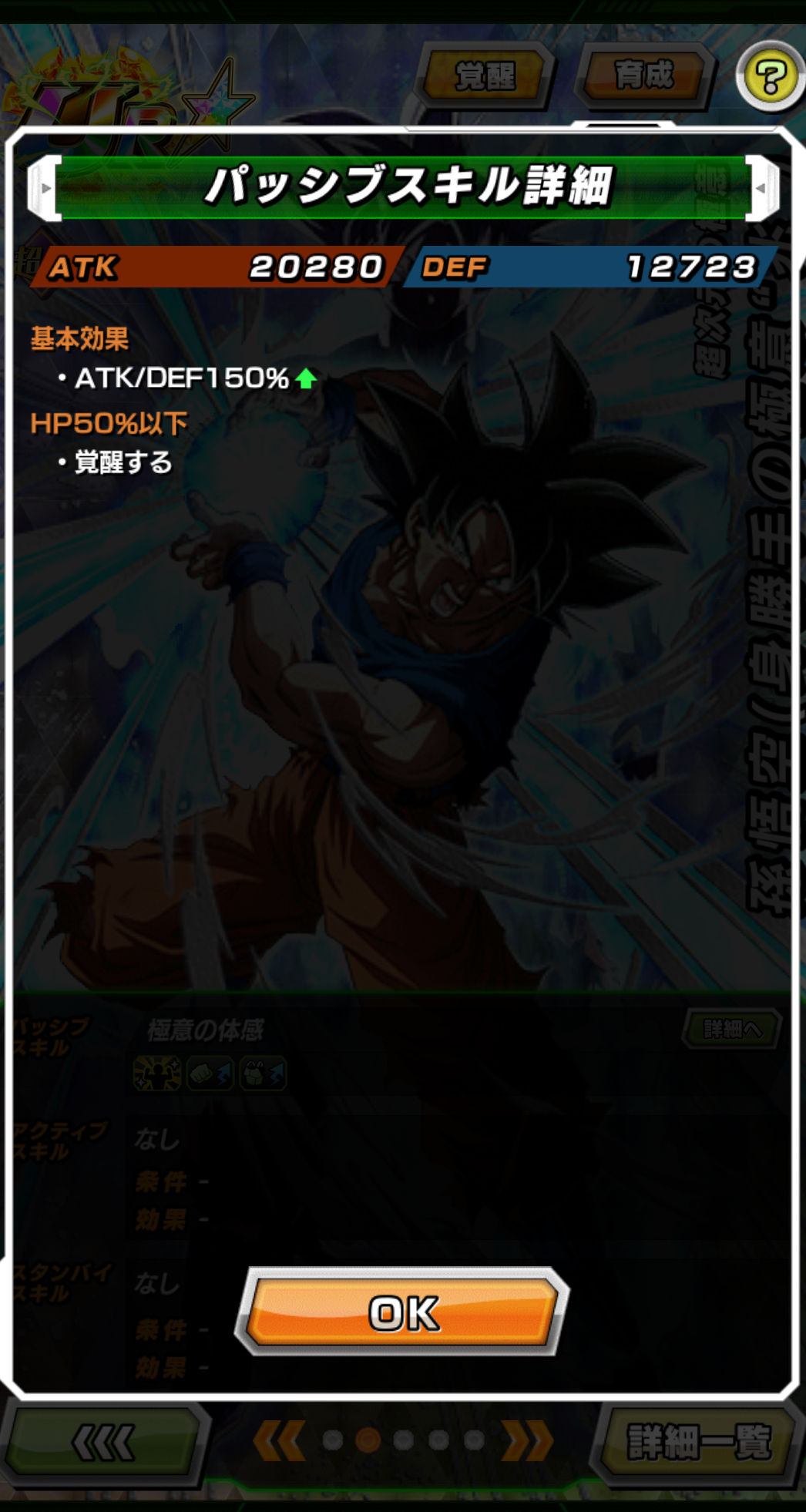 悟空と並ぶ:ATK3076万+3164万&50%会心、行動前DEF205万、行動後DEF287万、100%回避