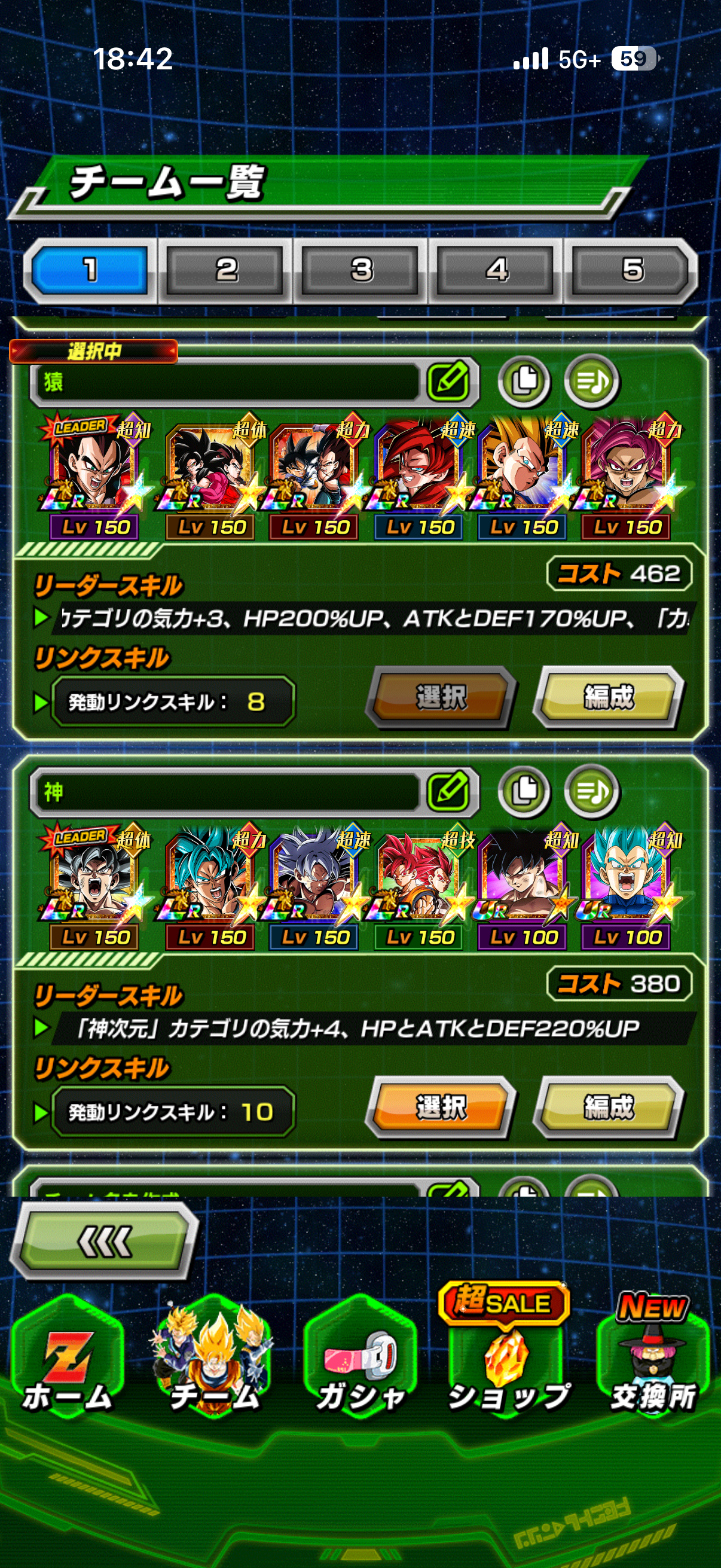 誰がどう見てもLR【絶対的強者への挑戦】孫悟空(身勝手の極意”兆”)+超サイヤ人ゴッドSSベジータ(進化)と組ませるべき性能ですが、そこだと回避率サポートも含め『100%回避⇒100%回避&見極め⇒87%回避&見極め』という短期戦超最強ムーブが出来るようになっています。