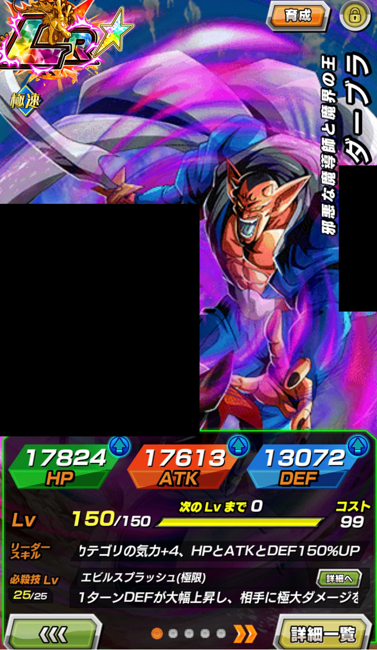 ベジータと並ぶ:ATK3957万+4064万+4170万&77%会心、DEF266万、毎T+38万、100%回避⇒87%回避、必殺見極め