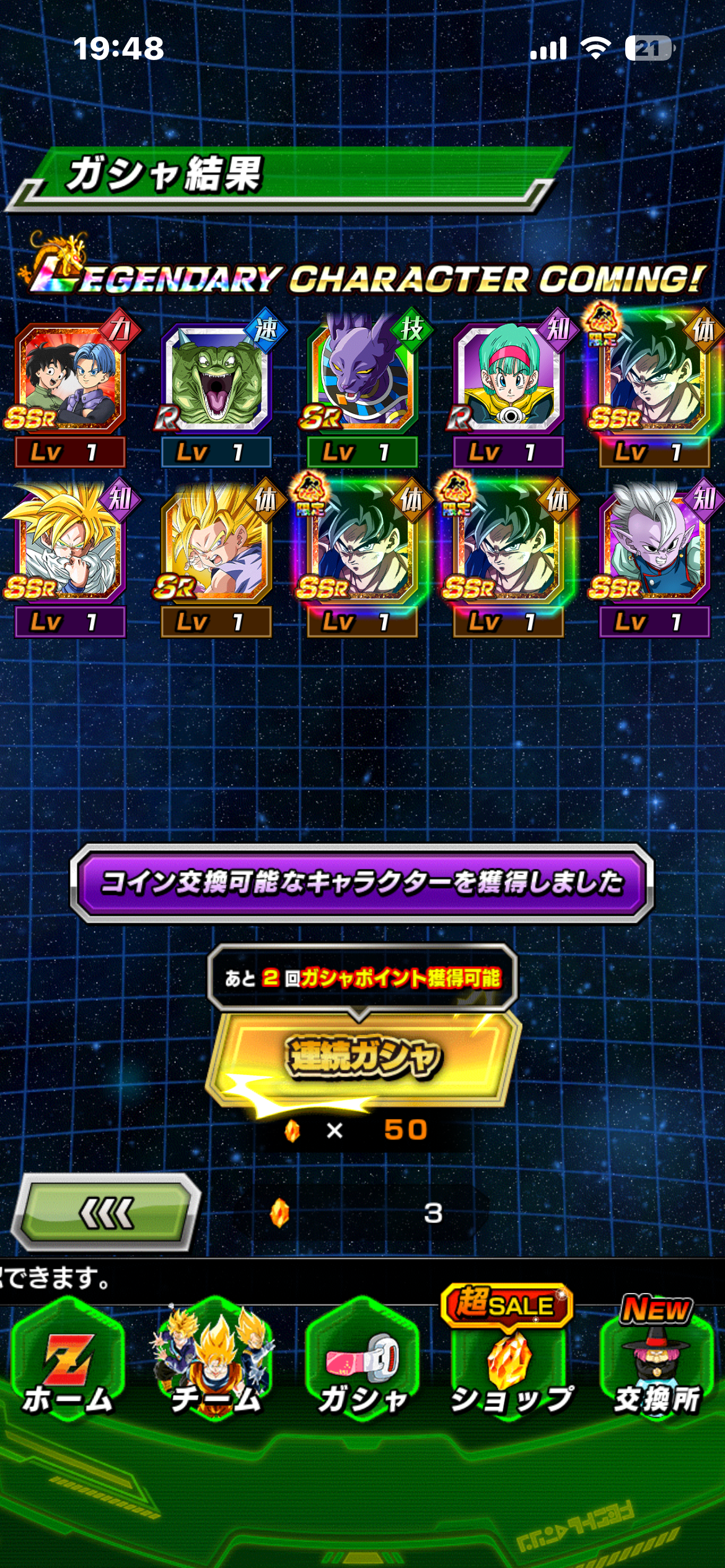 • 超ゴジータリーダーで速龍拳悟空3の超激戦をコンテしながらクリアしたり、