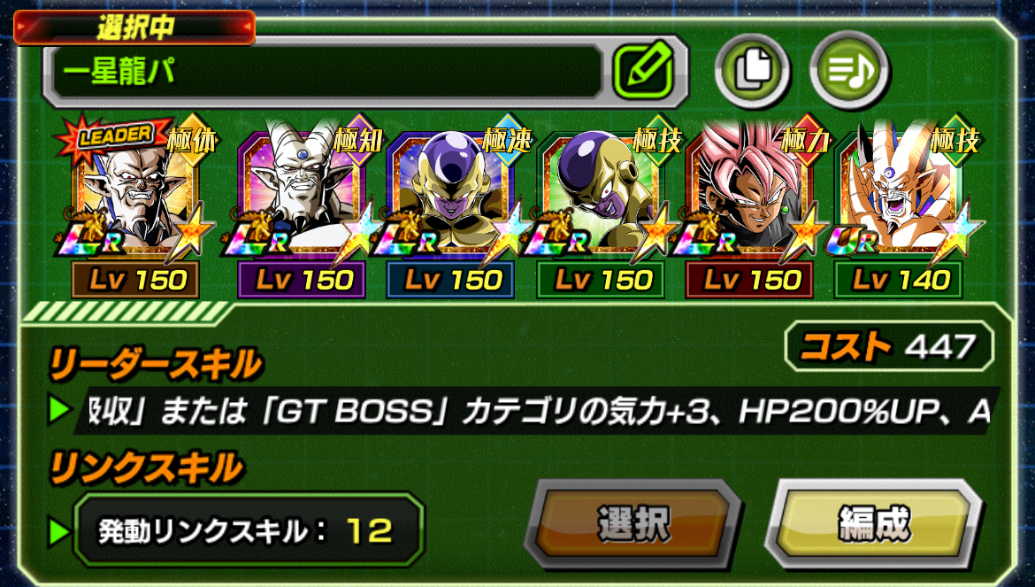今のインフレ的に来年には、一星龍が高難易度で通用しなくなってる可能性高そうだけど、その場合でもGT BOSSのキャラは一星龍のサポート前提の性能にされるんかな