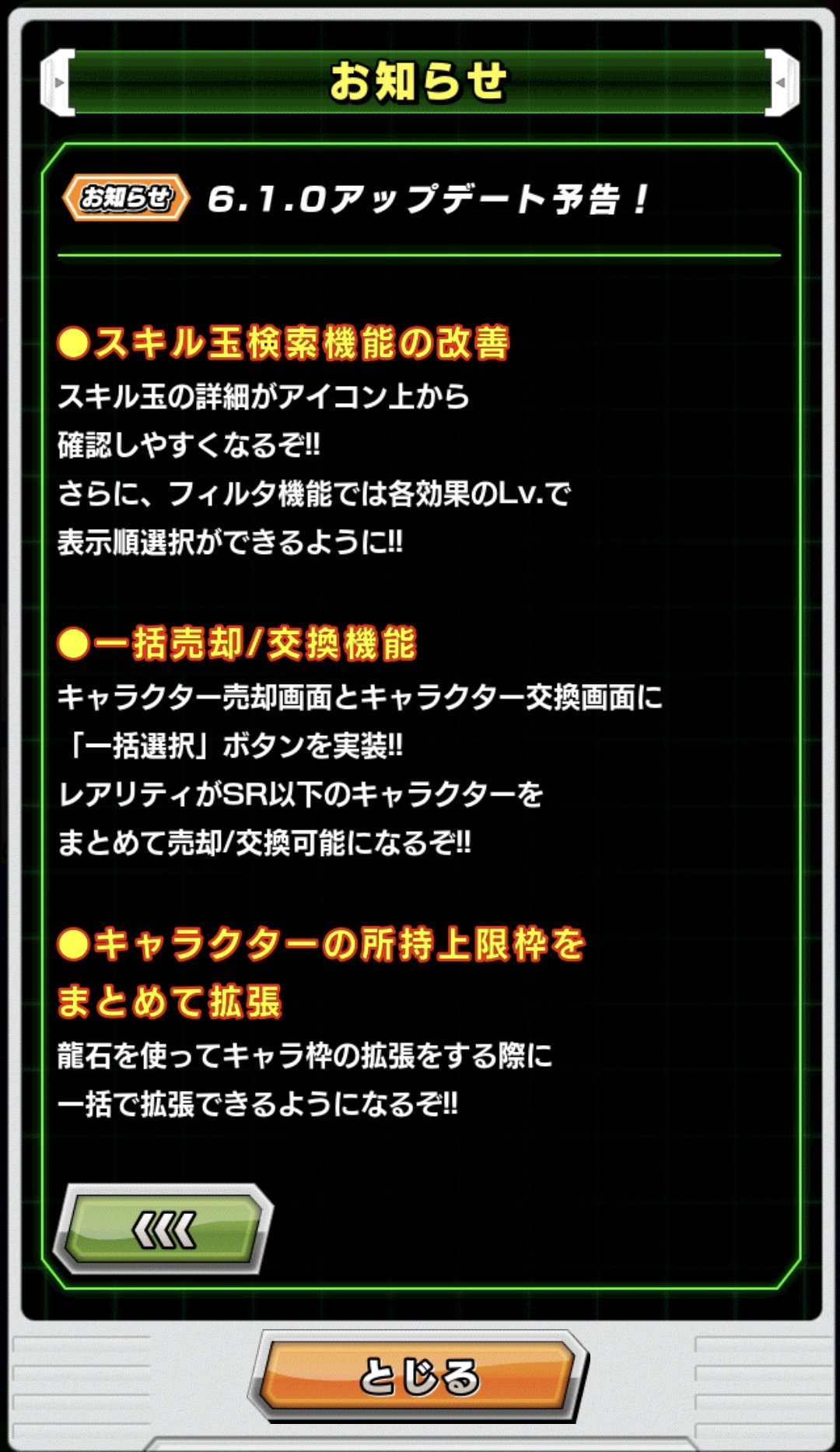 『スキル玉UIがぐちゃぐちゃ過ぎてお目当てのものが探せない』『ガシャ引いた後の不要キャラ処理がダル過ぎる』という年単位でず~~~~っと言われまくって来た問題点が遂に解決、素晴らしいアップデートでしょう。