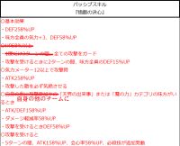 ユニット必殺追加効果…99ターンDEF50%upし、1ターンATK50%up(必殺倍率加算)し、50%の確率で敵2ターン気絶させる