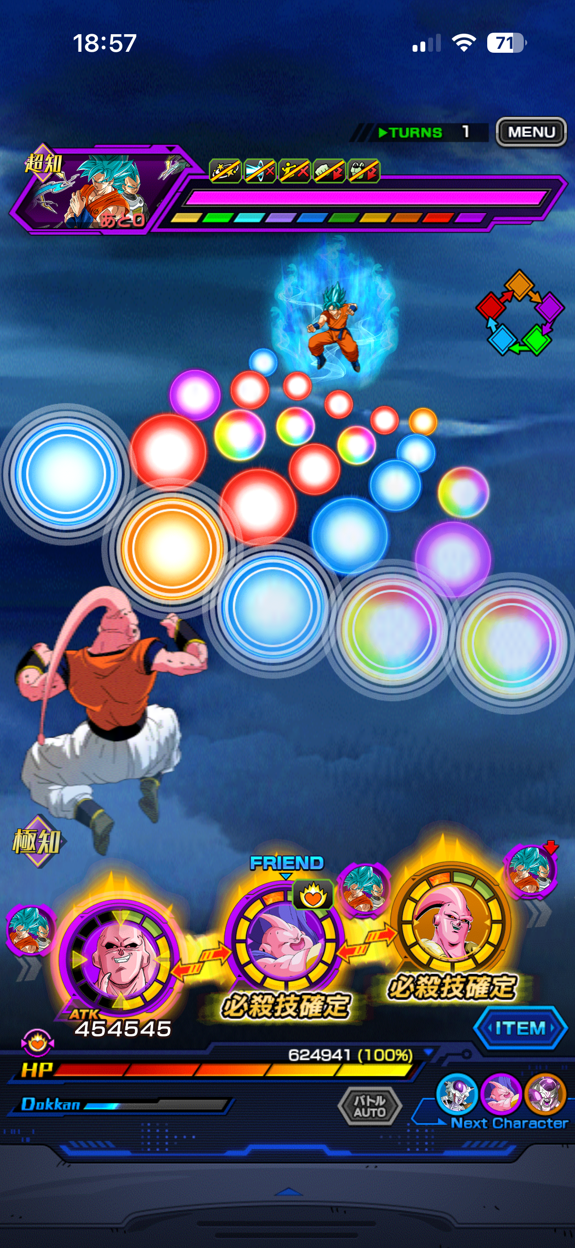 とは言え自前の変換がある時点で『3個取れるターン』は明らかに多く、2個でも必殺技以外への対処は全く問題なし、ブウ編成なんかであればチーム全体としてそのような部分もほとんど気にならなくなるし、その程度の弱点は補って余りある強さを持っています。