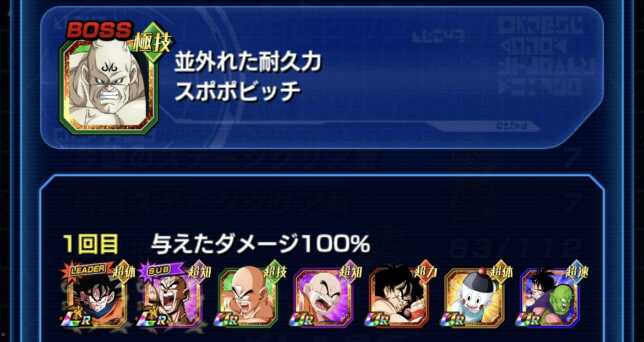 | vsスポポビッチ | 技属性 | 気絶無効 追加効果でATK上昇 |