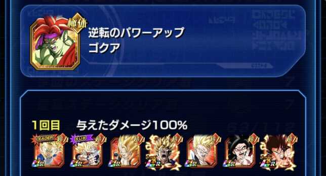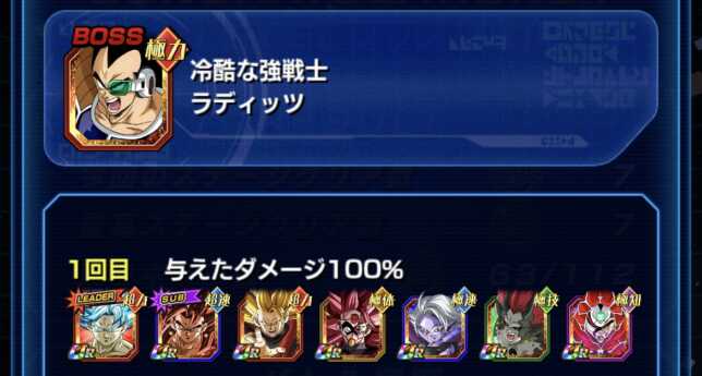 レベル1の2戦を『曜日別バーダックチーム』『チュートリアルサイヤ人編チーム』などで突破したら、後はレベル2~レベル3の8戦を上記のようなカテゴリ編成8チームで全突破する事も可能です。
