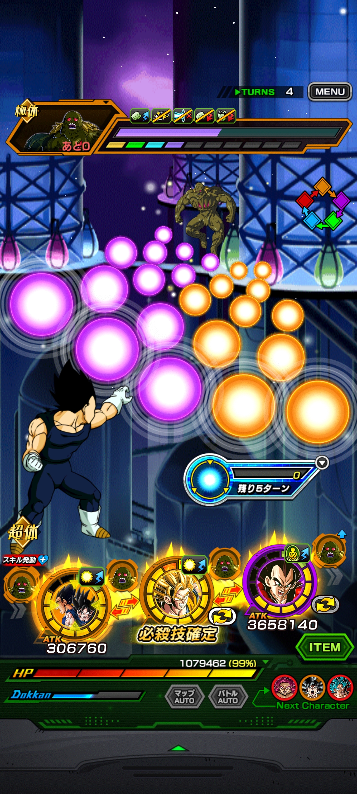そして守りも非常に堅牢、最速スタンバイでも敵ATK2,000万級の必殺も耐久出来るし、鉄壁の1番手要員かつ気玉変換要員としてフィニッシュまでを繋げます。