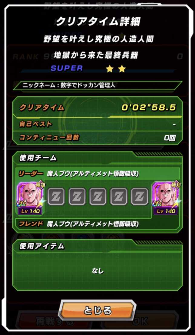 開催ステージ:超激戦・『野望を叶えし究極の人造人間』ステージ1[難易度SUPER]