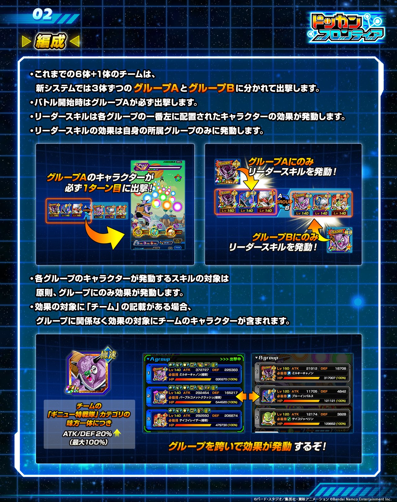 | 『魔人ブウ編』または『ベジータの系譜』カテゴリの気力+3,HP,ATK,DEF170%up 『天才戦士』カテゴリを含む場合は更にHP,ATK,DEF30%up |