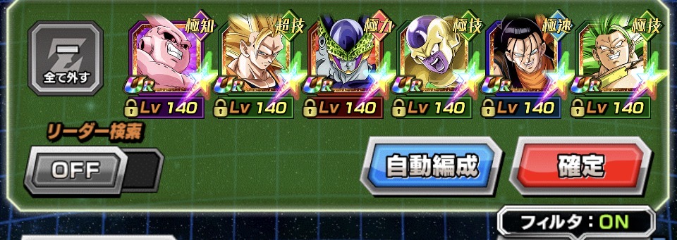 気玉取得に関しても、自前の変換は初動のターンや雑魚狩り染みたイベントなどでは発動しない時もままあるし、変換も虹気玉変換ではなく『色気玉変換』なので変換運次第では上手く6個取れないケースというのもあるし、そもそも気力リンクが『王の血筋・短期決戦』の2種しかないので割と組む相手も選びます。