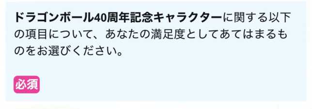 アンケートの内容はシンプルに『DB40周年記念キャンペーン』はどうだったかという内容、たまにある『今後のドッカンの方向性を示唆する面白い項目』とかも特に無いので思った通りに回答してあげれば良いでしょう。