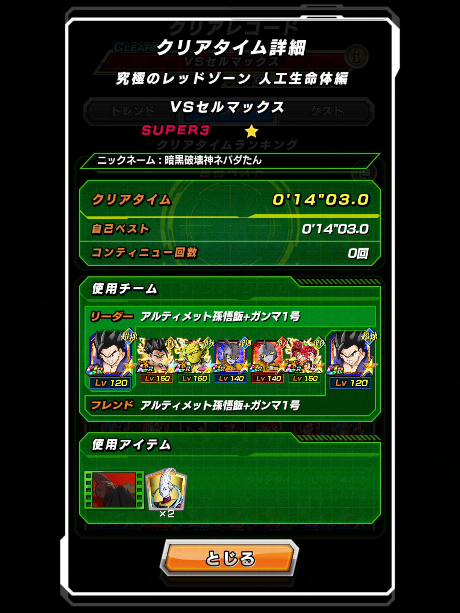 力ベジットは敵のHP次第では火力押しでいけるからなぁ…、アイテム使い切るまでに倒せればセーフ