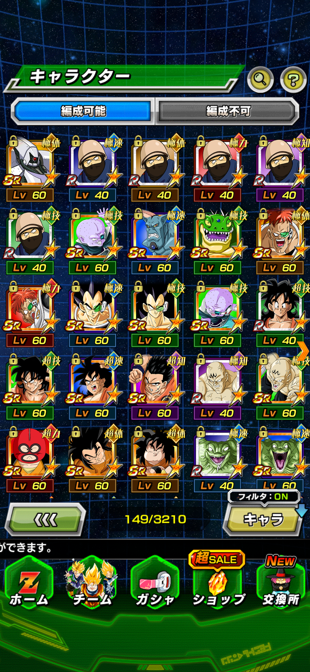 そこそこ集めてる。必殺技も基本MAX。途中から集め出したから持ってないキャラもいる。